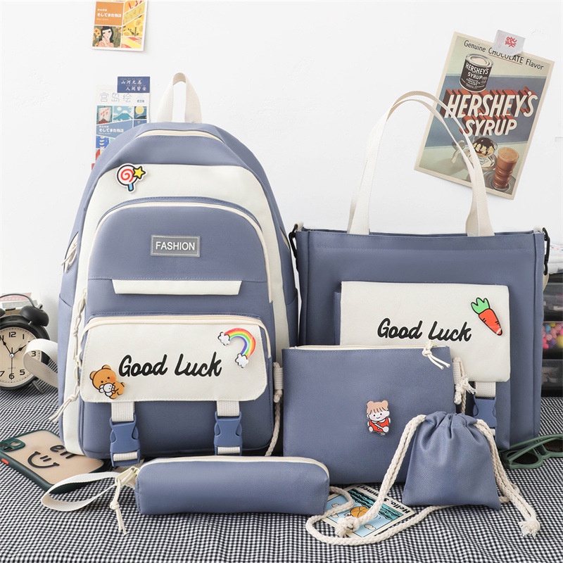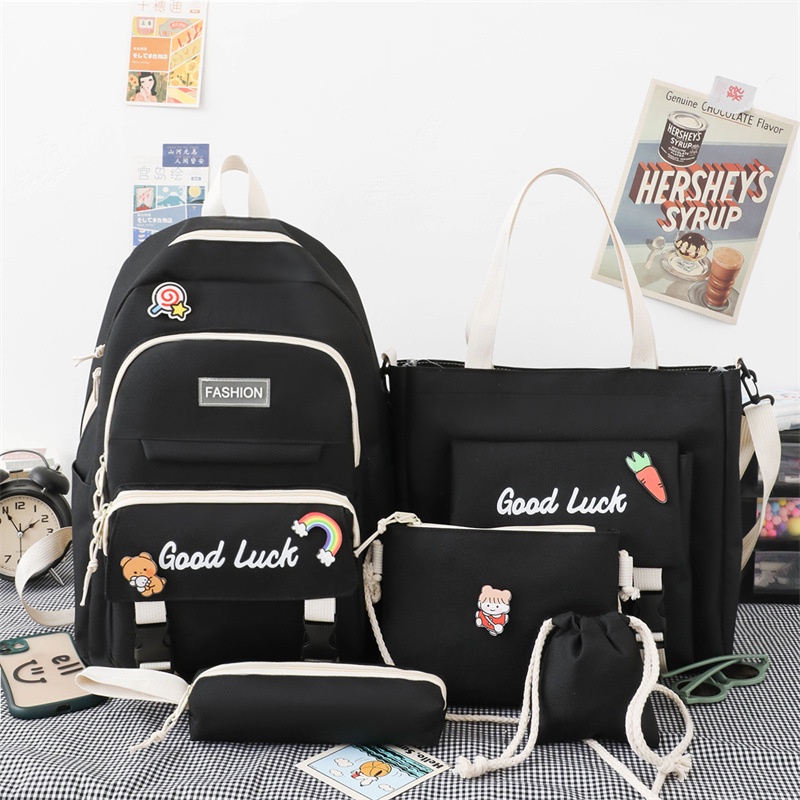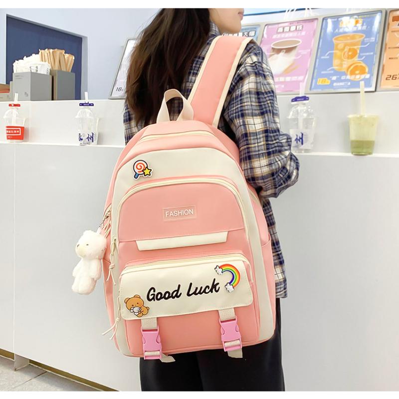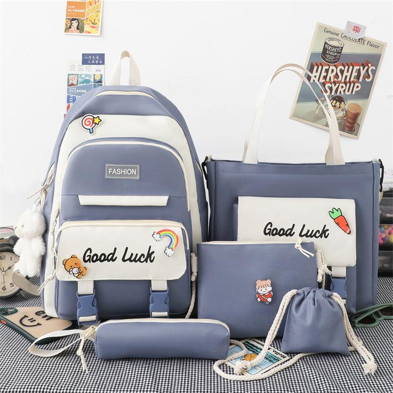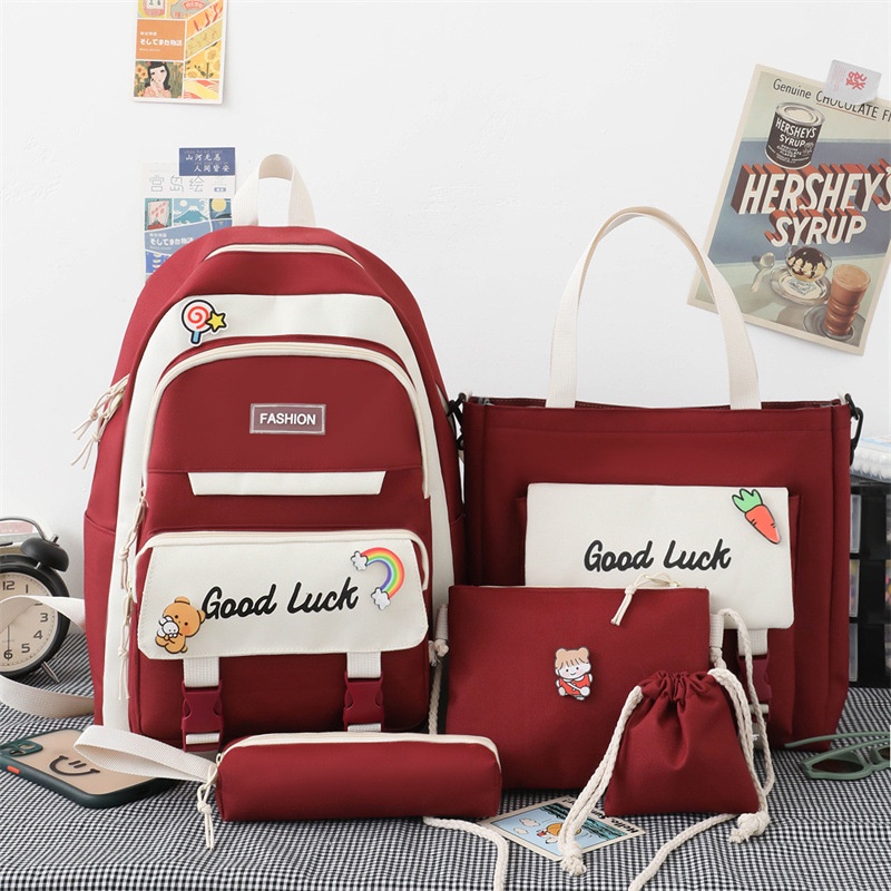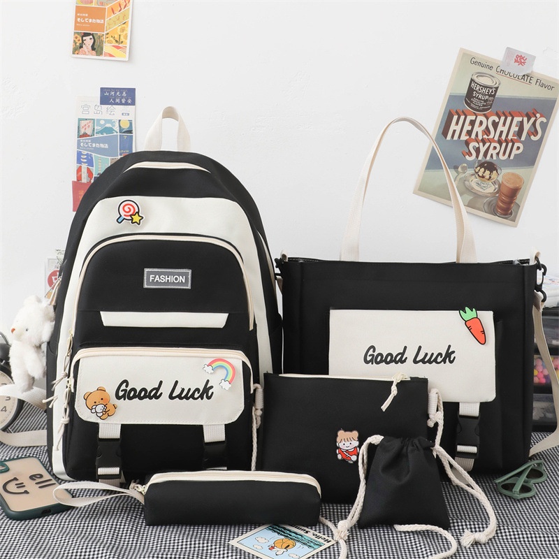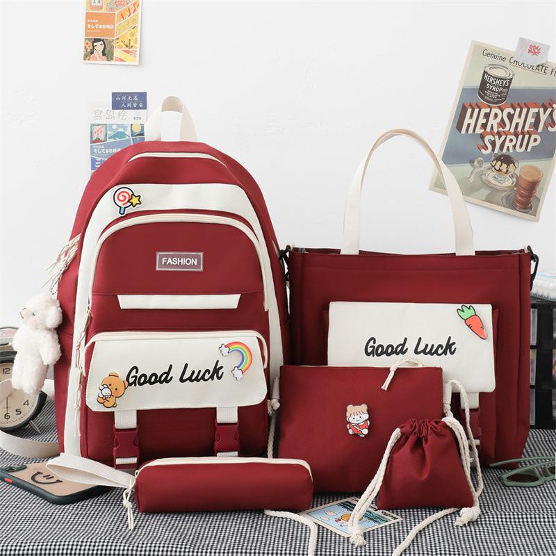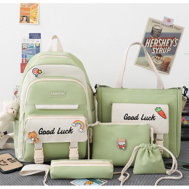 5 In 1 fashion Women Backpack Ins Japanese Junior High School Students School Bag Large-Capacity Travel Backpacks