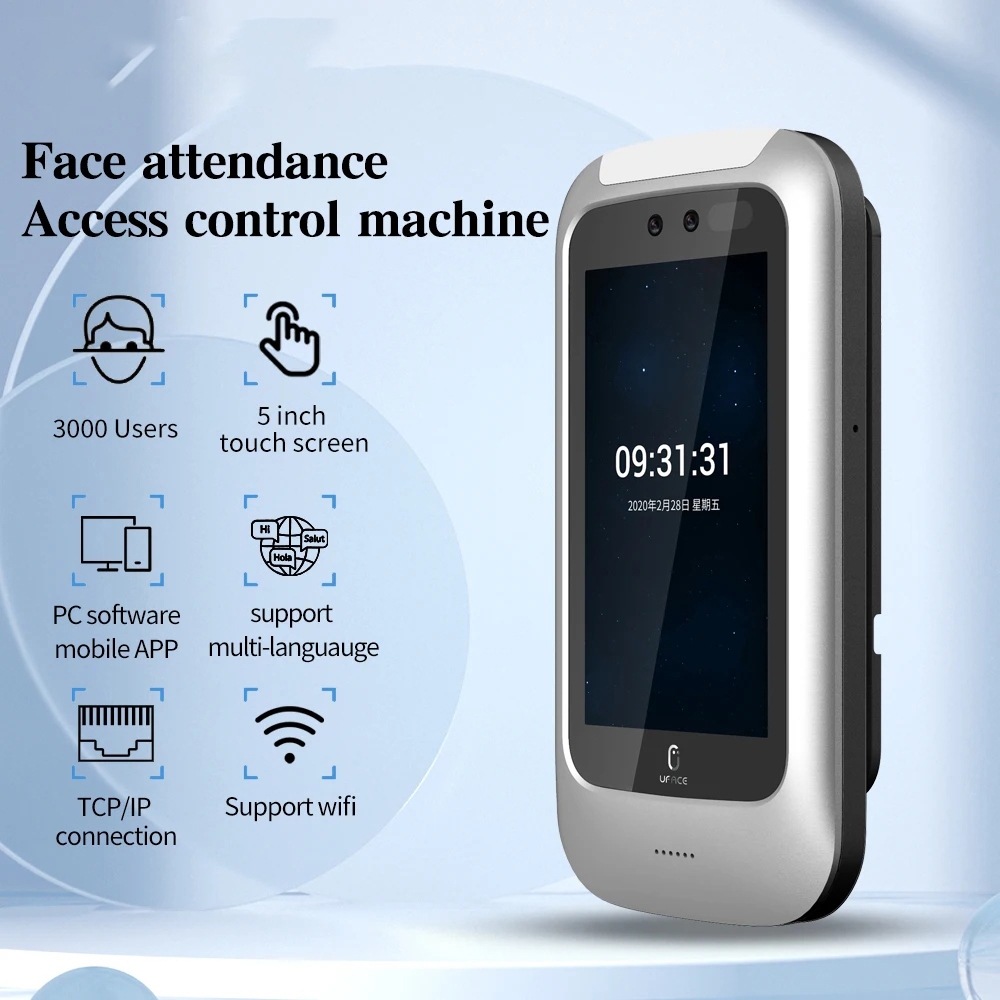 5 Inch WiFi TCP IP Face Recognition Touch Screen Attendance Device Support 13.56Mhz IC Card APP/ PC Software / Cloud 3000 Users