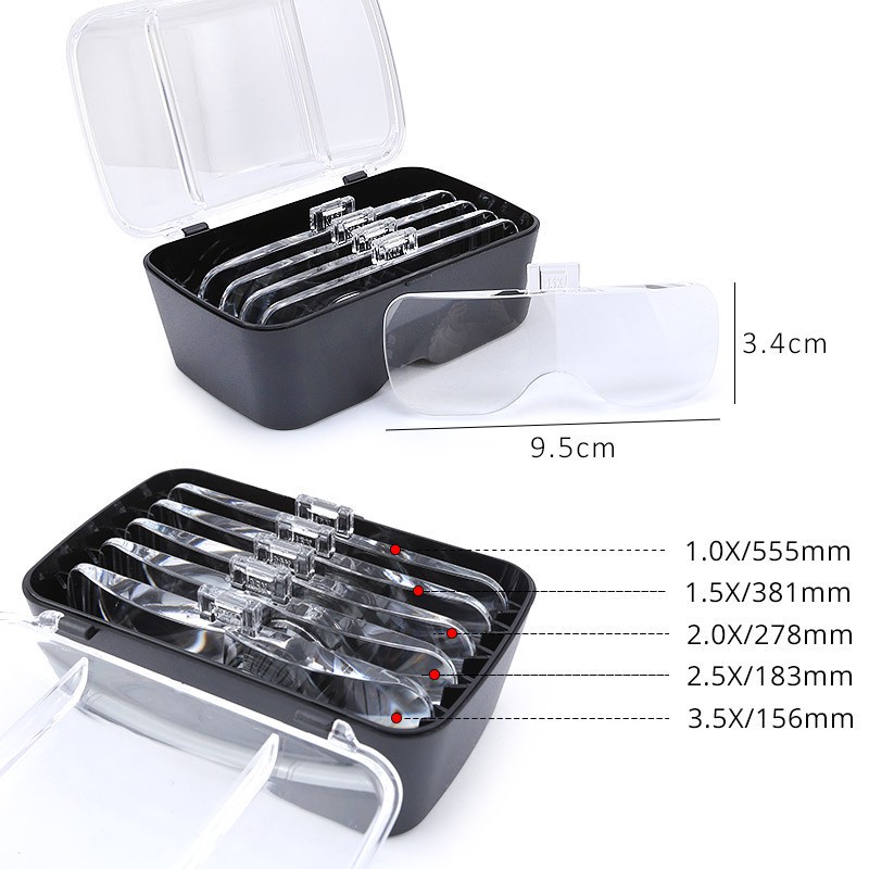 5 Lens Adjustable Headband Magnifying Glass Magnifier With LED Light lamp Magnifying Glasses For False Lashes Eyelash Extension