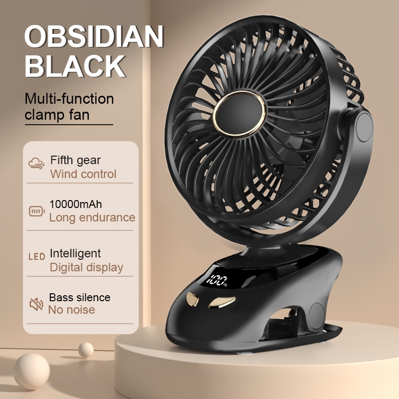 5 Modes rechargeable mini fan clip fan LED digital desktop fan C-type charging suitable for indoor and outdoor use in offices