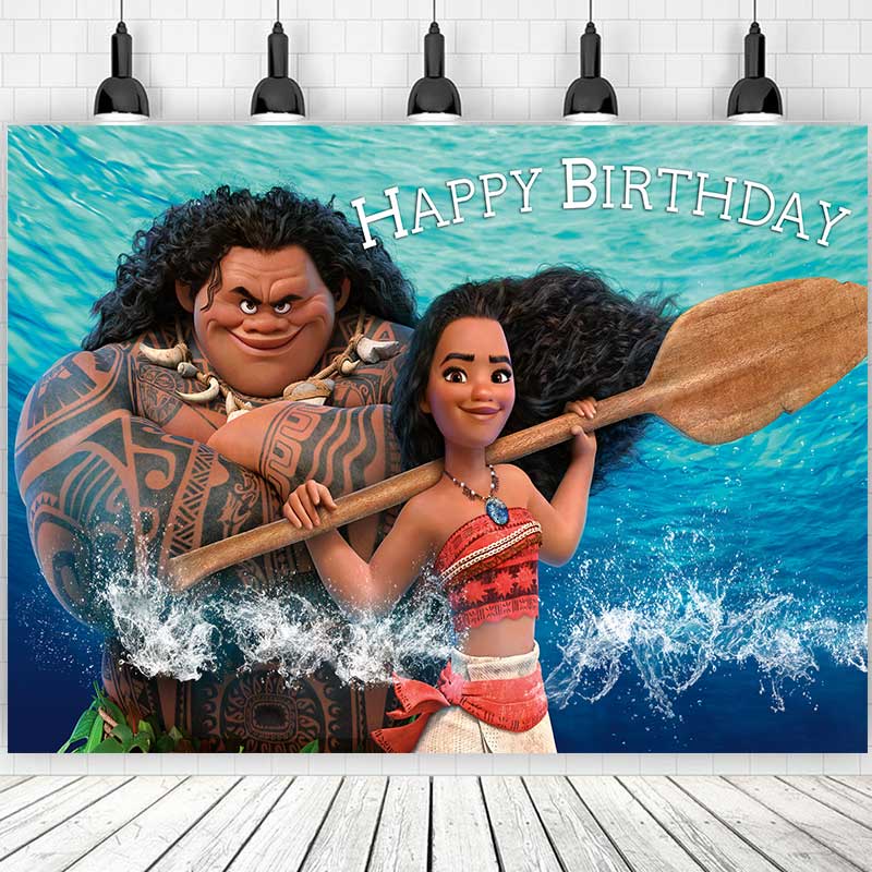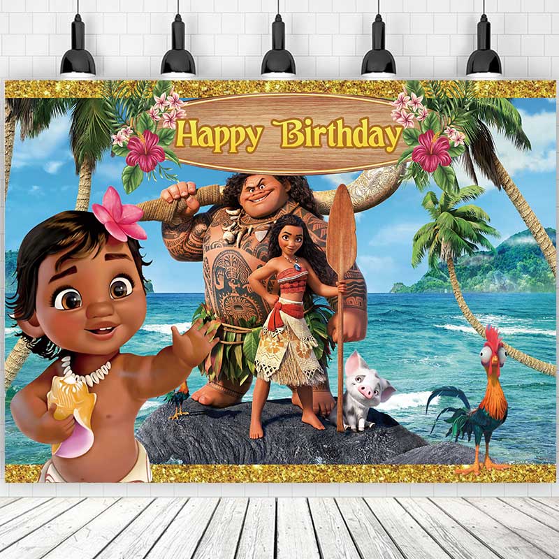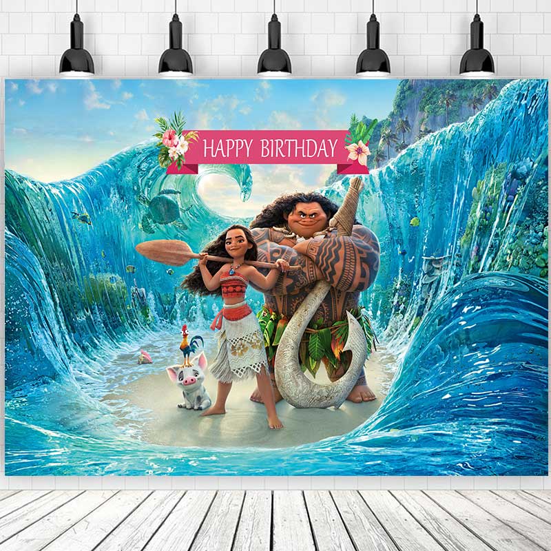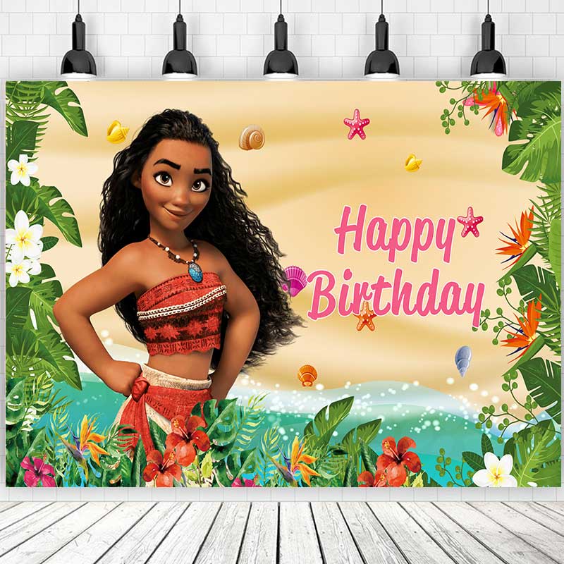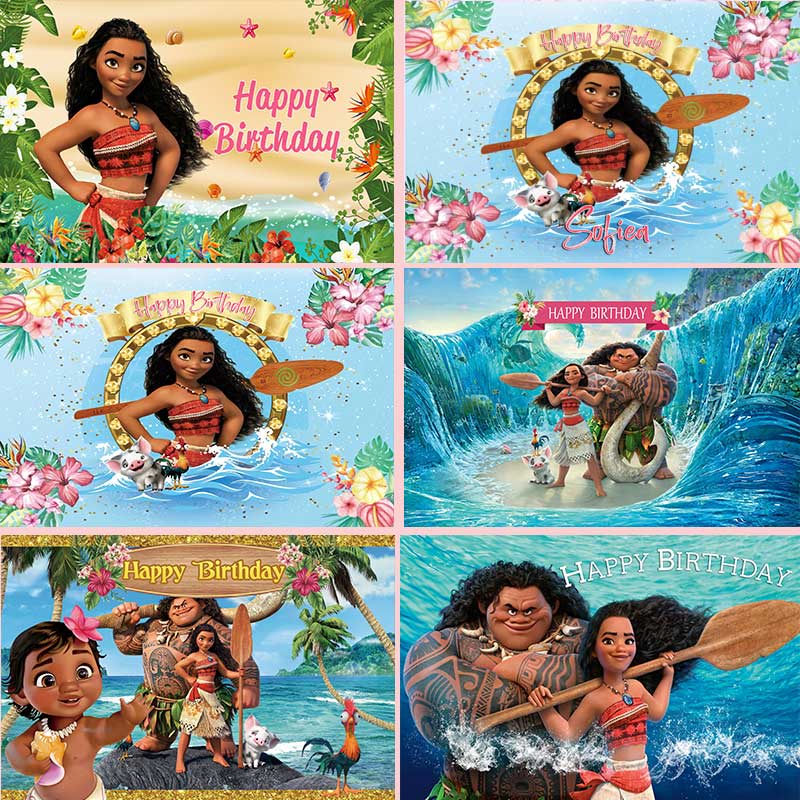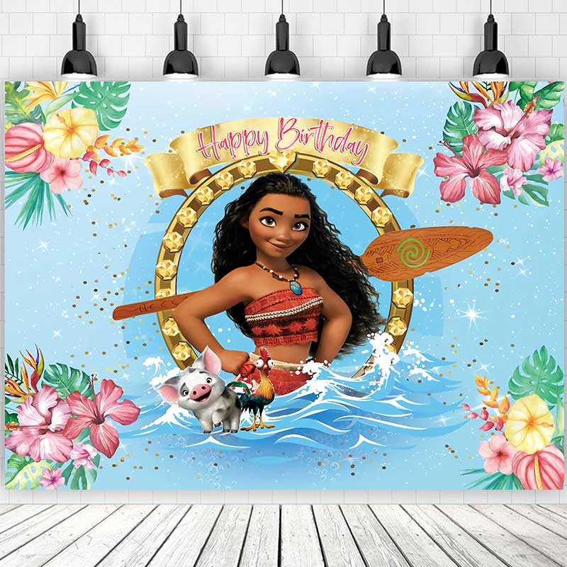 5 Options Moana Princess For Girl Birthday Backdrop Photography Baby Shower Kids Children Blue Ocean Flowers Background Party Decor Custom Name Photo