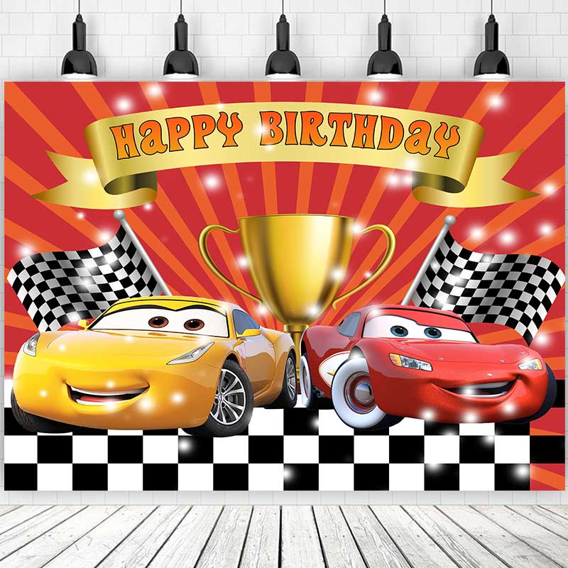 5 Options Race Cars For Boys Birthday Backdrop Photography Baby Shower Kids Children Gold Trophy Background Party Decor Custom Name Photo