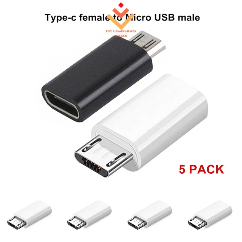 5 PACK USB TYPE C FEMALE TO MICRO USB MALE ADAPTER CONVERTER