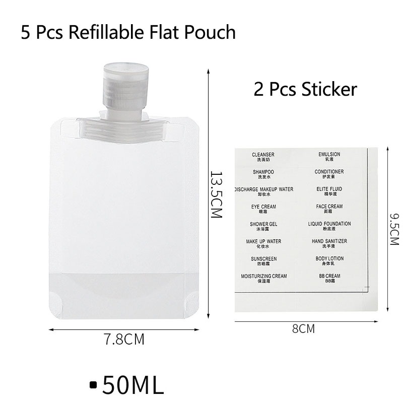 5 PCS Travel Refillable Flat Pouch Shampoo Liquid Lotion Dispenser Bag Cosmetic Refillable Flat Pouch Travel Bottles Set