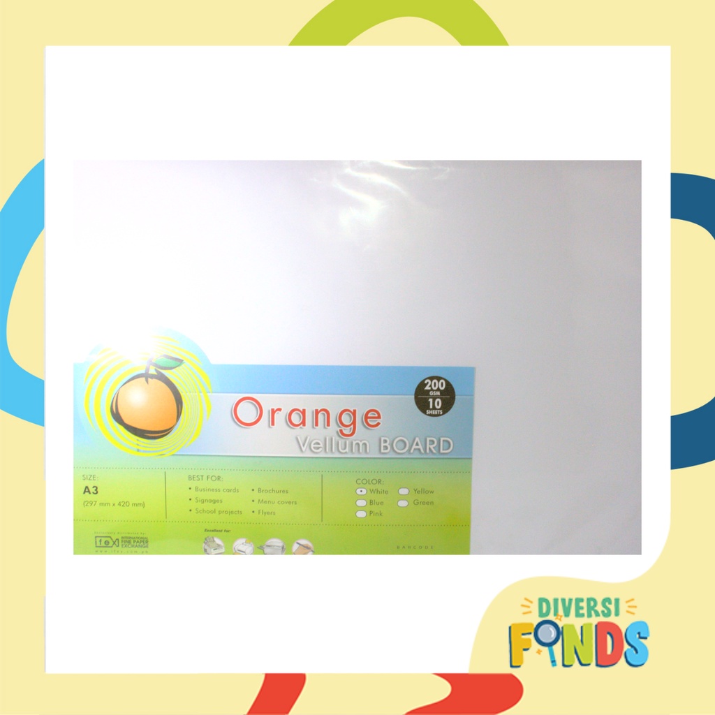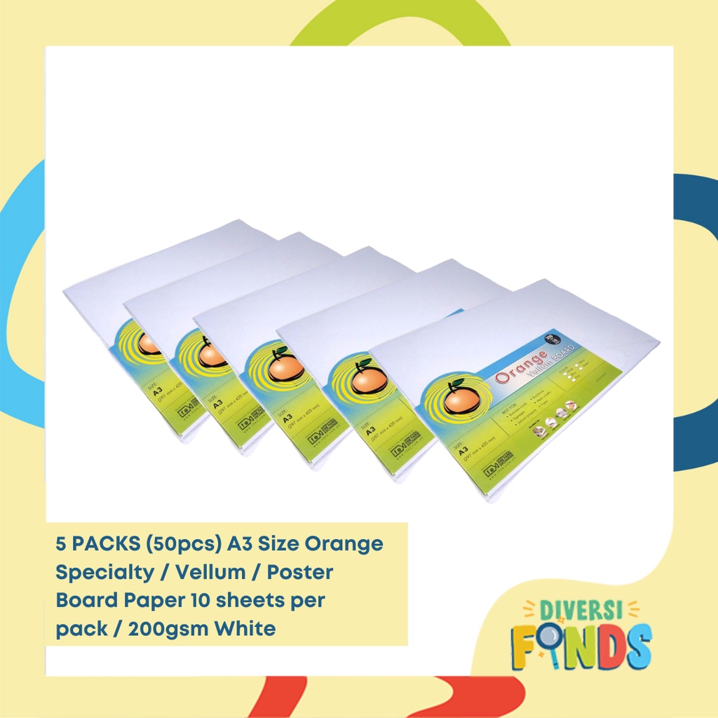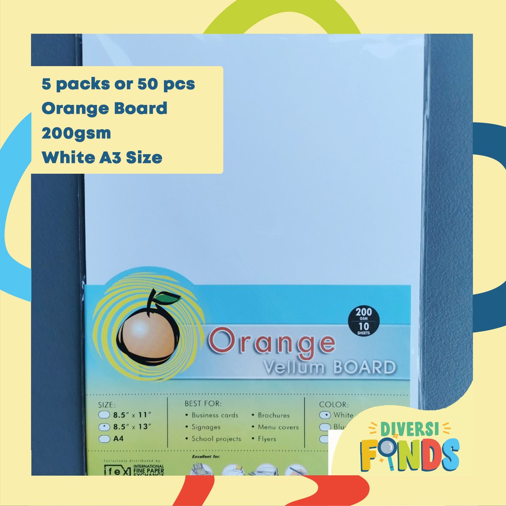 5 PKS or 50pcs A3 Board Paper Size Orange Specialty/ Vellum Board Paper 200gsm White,10sheets/pk