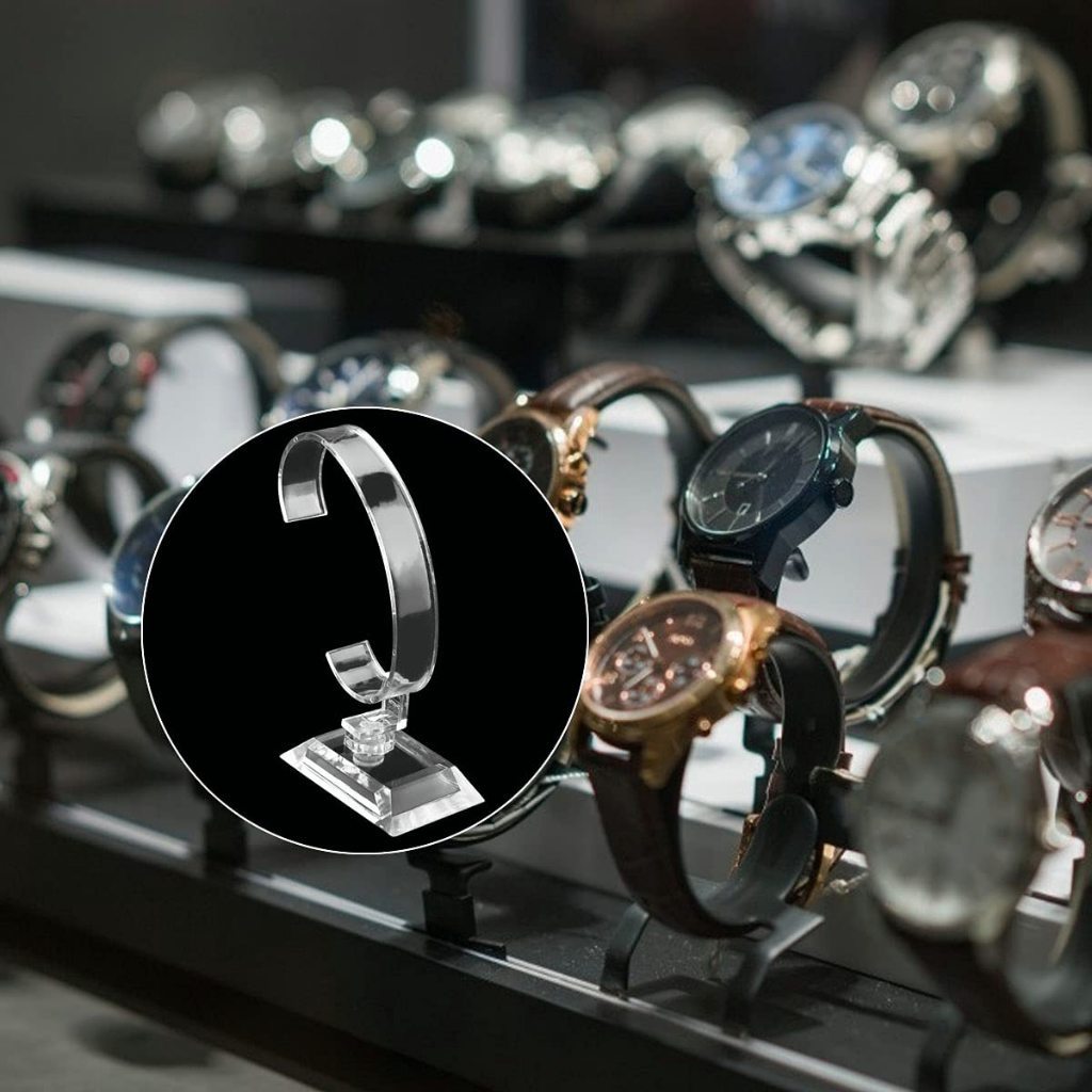 5 Pack C Shape Single Watch Display Rack 4 inch/3.5 inch Acrylic Watch Holder for Stand Showcases