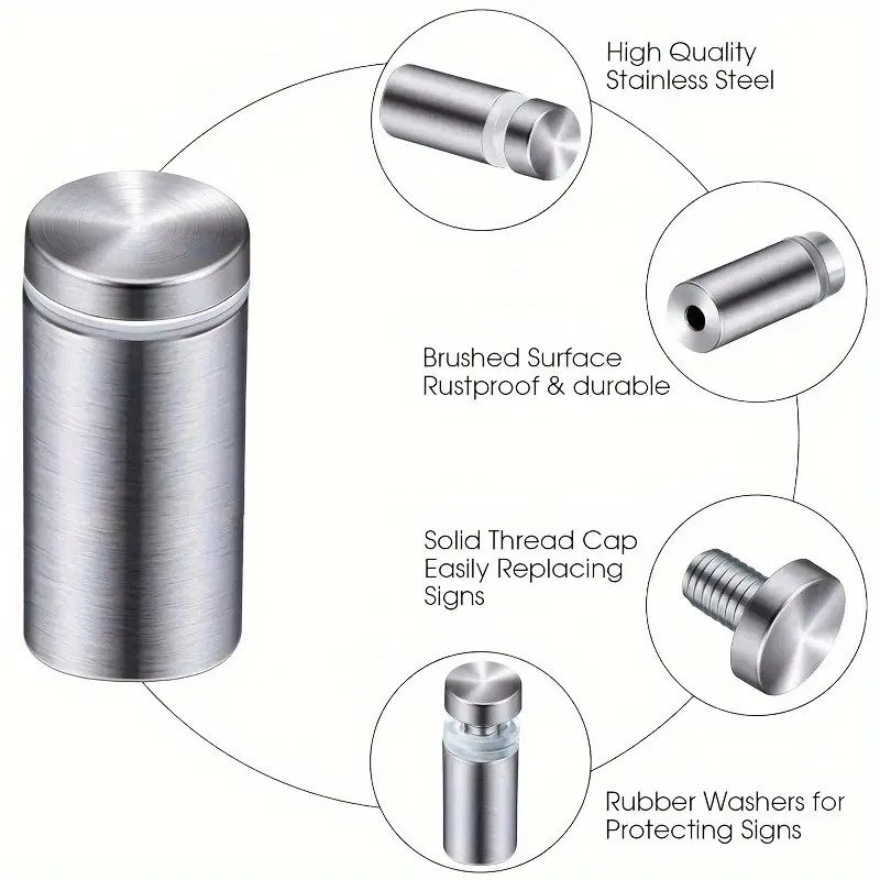 5 Pack Stainless Steel Standoff Screws, Wall Sign Standoff Mounting Hardware Advertising Glass Standoff Nail for Hanging Acrylic Picture Frame