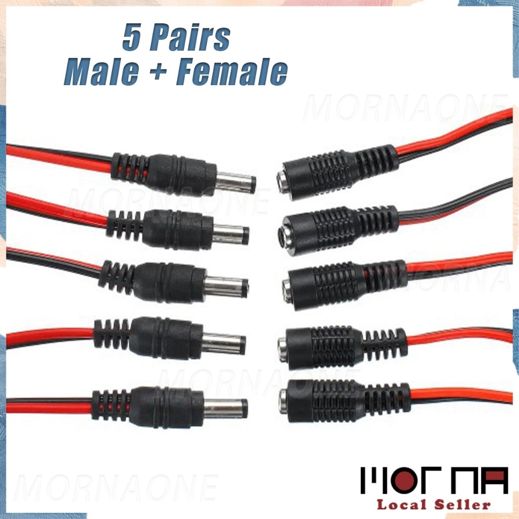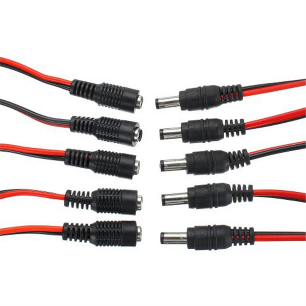 5 Pairs 5.5x2.1mm Male + Female DC Power Supply Wire Jack Plug Wire Connector CCTV Cameras