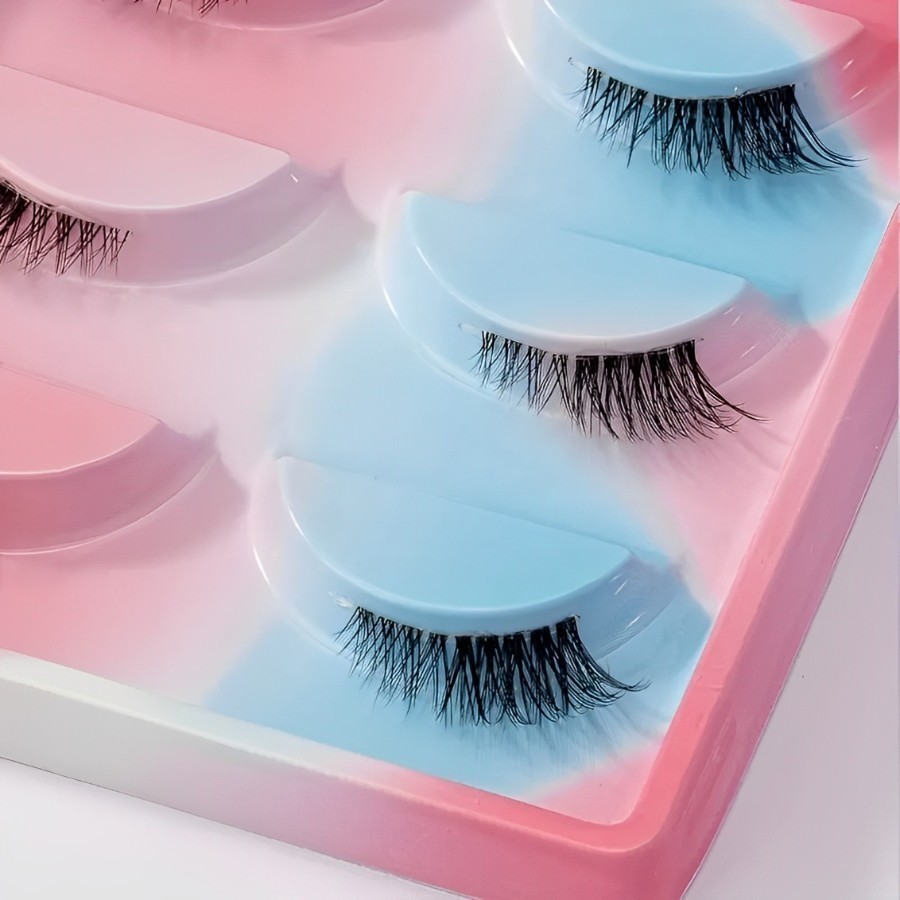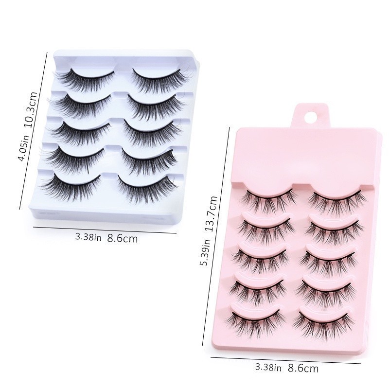 5 Pairs False Cat Eyelashes With Transparent Stem Natural And Long Style Cross And Fluffy Elongated Eye End Artificial 3D Eyelashes