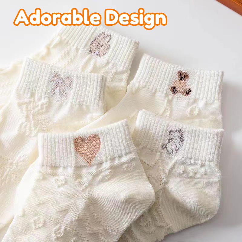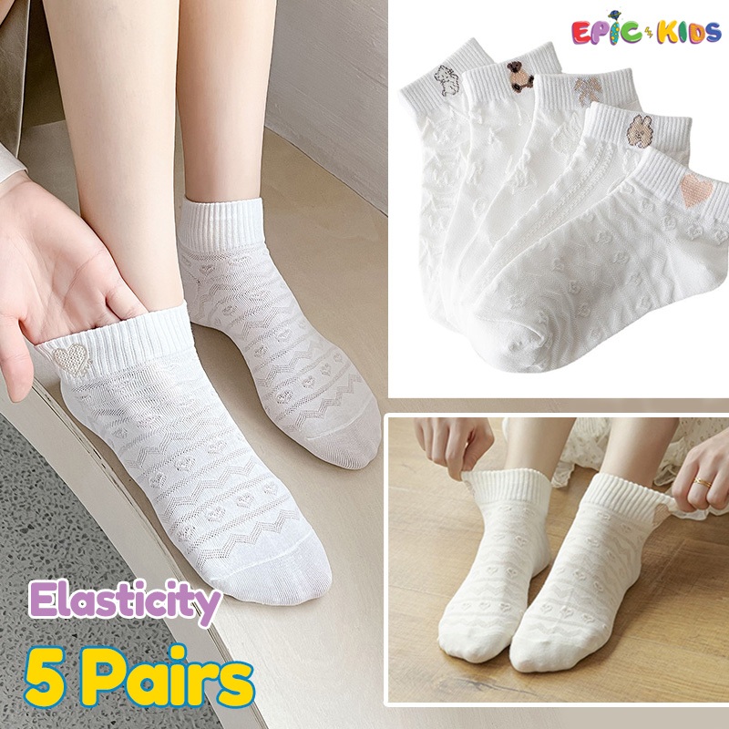 5 Pairs Kids Soft Cotton Socks For Kids Girls School Fashion Breathable Socks Cute Medyas for Kids