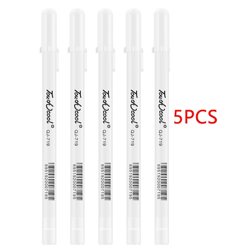 5 Pcs 0.8mm Creative White Ink Gel Pen Highlight Marker Pen Fine Tip for Student Stationery Drawing Art Writing School Supplies
