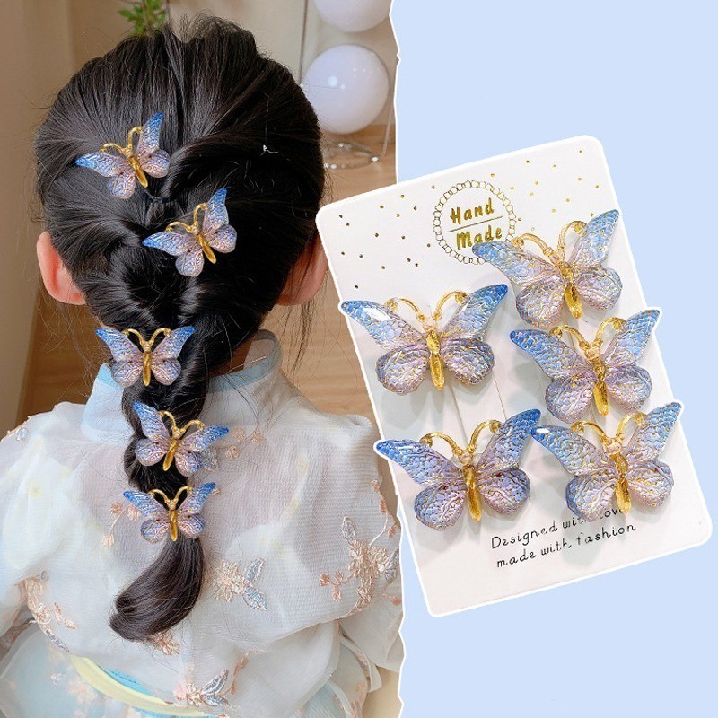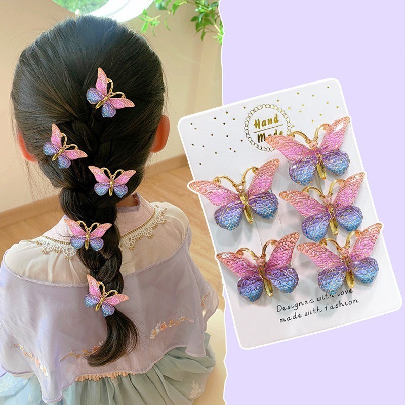 5 Pcs Cute Vivid Butterfly Hairclips Set Kids Hairpins Baby Girls Trumpet Side Bac Clip DeWome