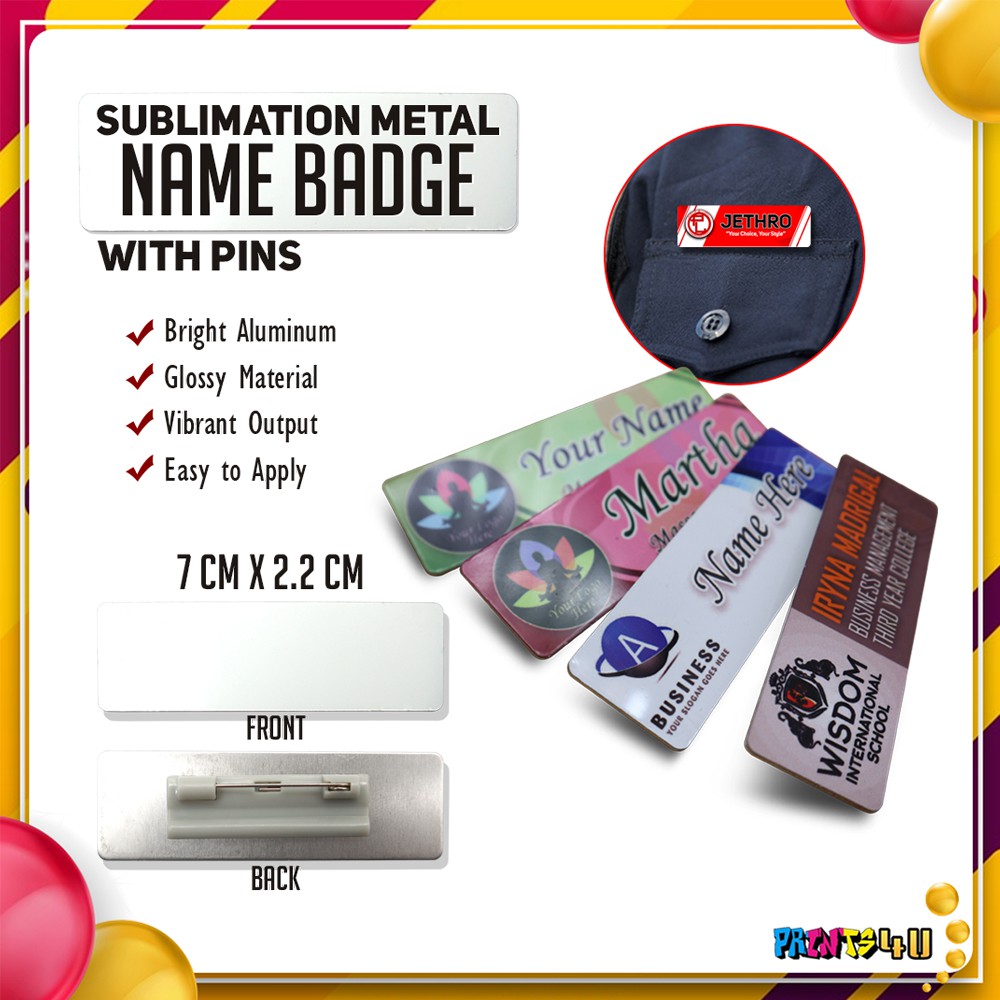 5 Pcs Sublimation Metal Name Badge With Pin 7 X 2 Cm (Blanks)