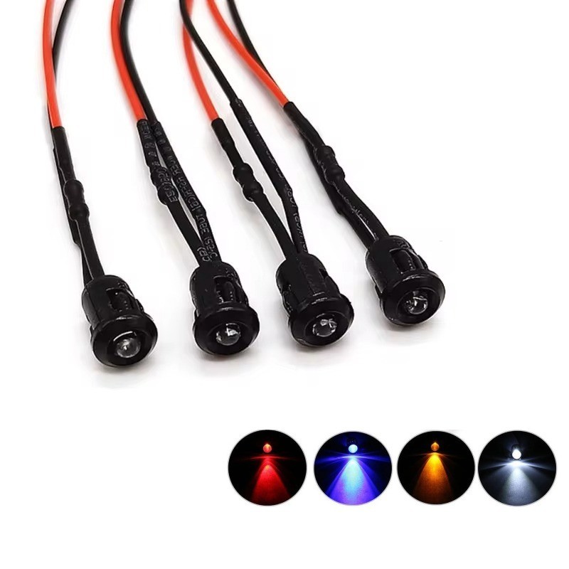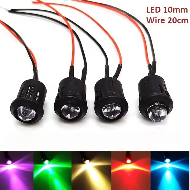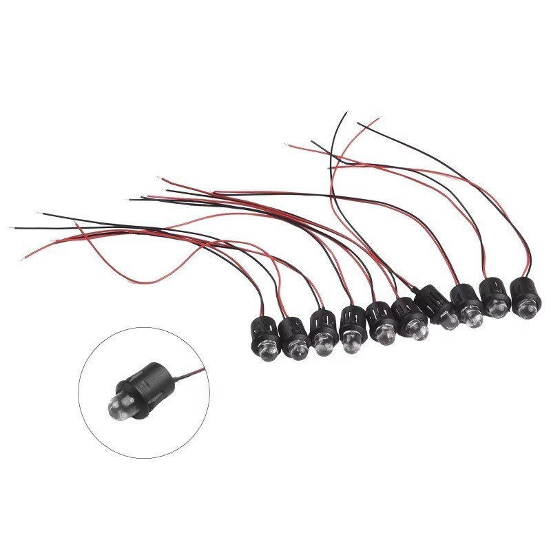 5 Pieces Round Pre-Wired LED 10mm with Wire LED Lamp Diode Red/ Green/ Blue/ White/ Yellow 12V LED with 20CM Wire Plastic Holder