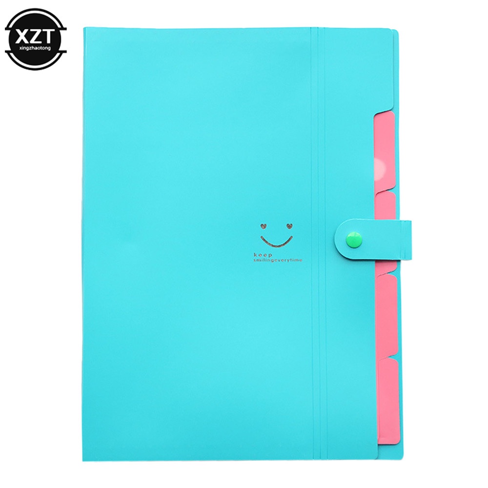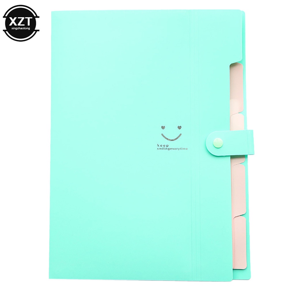 5-Pocket A4 Plastic Expanding File Folders Accordion Document Organizer Storage Envelope Paper Transparent Folder Macaron Colored Folder Stationary Student School&Office Supplies