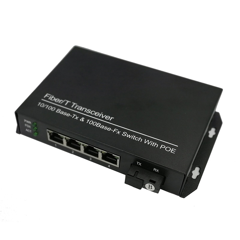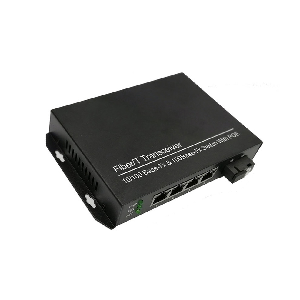 5 Port POE Switch 1 SC 4 RJ45 fiber connector to 4 10/100M ethernet ports 5 port media converter
