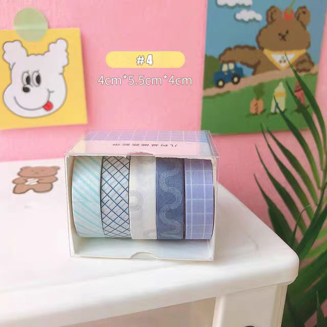 5 Rolls/box Creative Masking Tape Hand Account Decoration Sticker Tape Fresh Lovely Plaid Sticker
