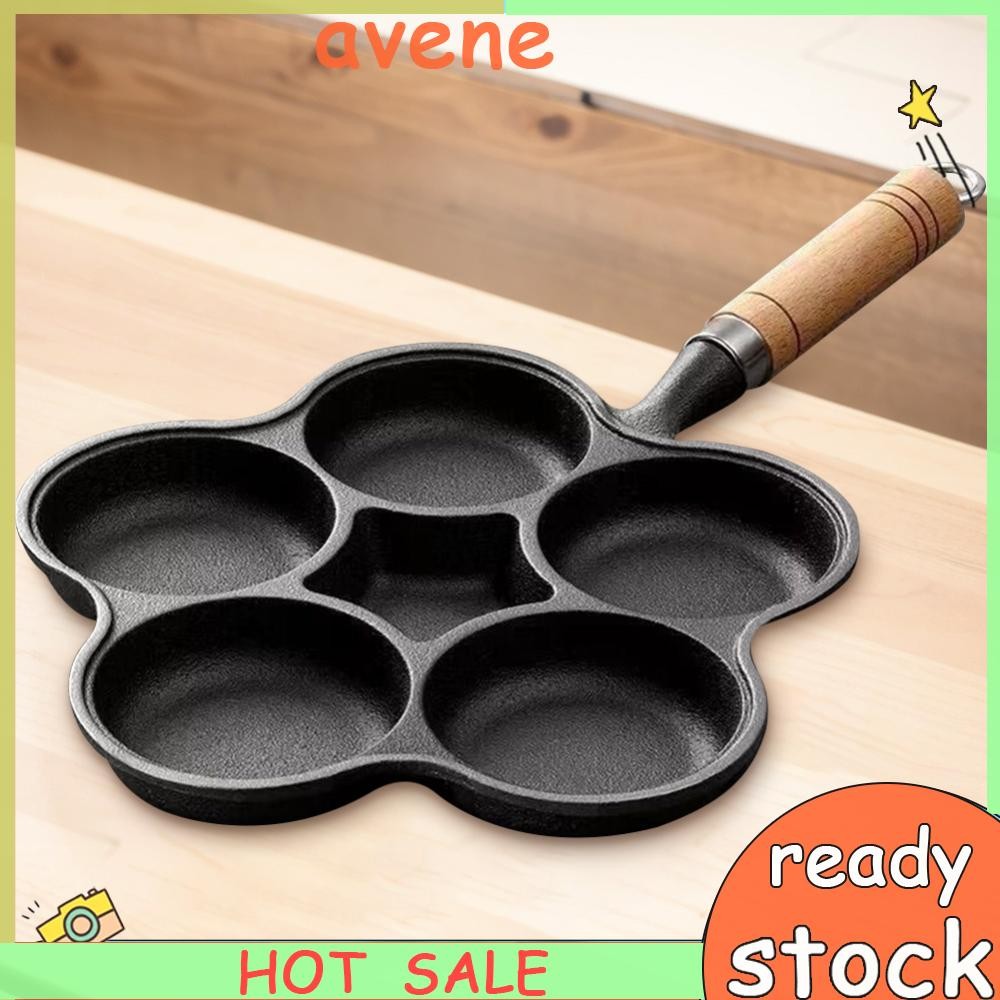 5 Round Holes Egg Frying Pan Cast Iron Omelet Pan for Gas Stove Induction Cooker [avene.ph]