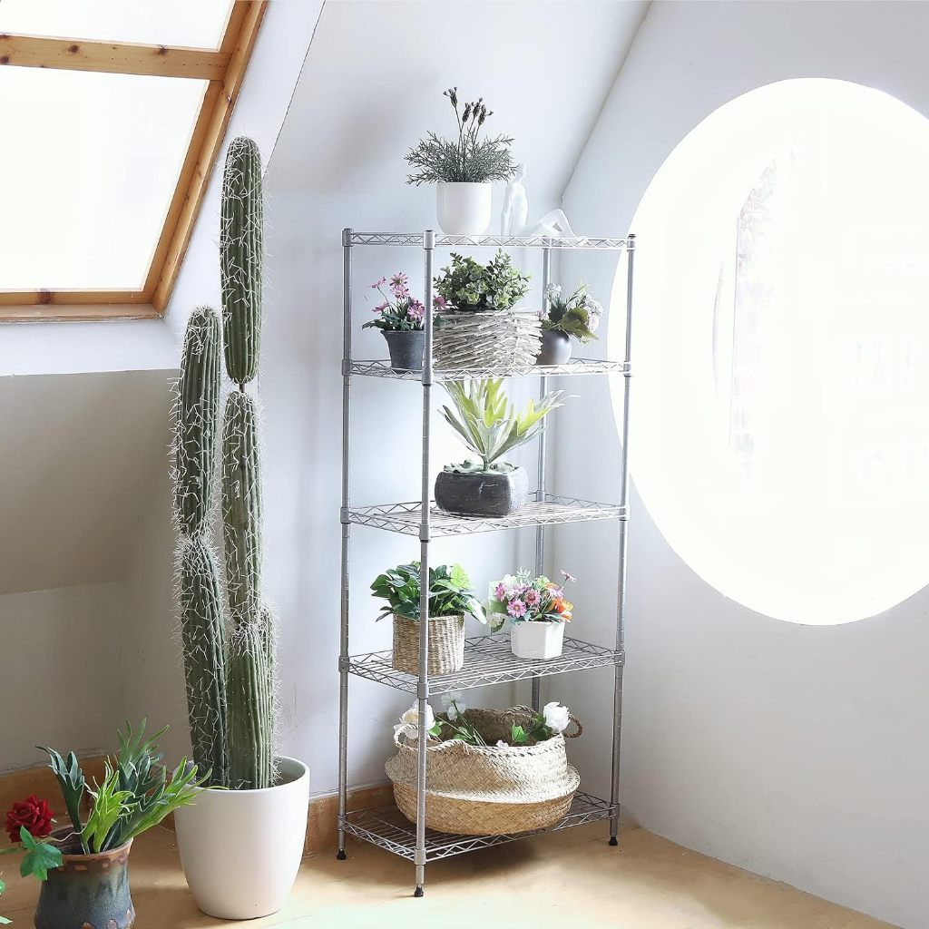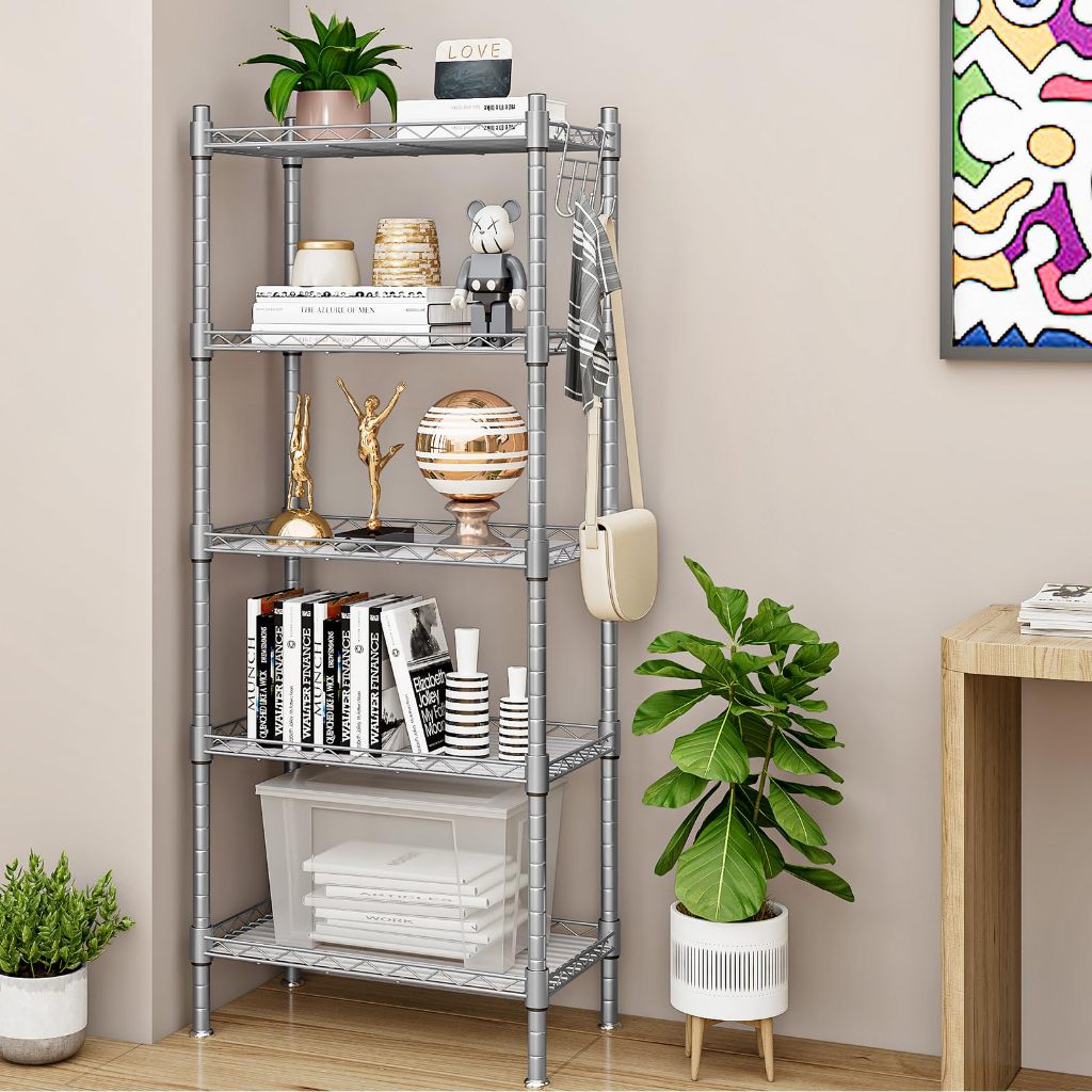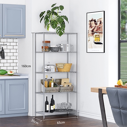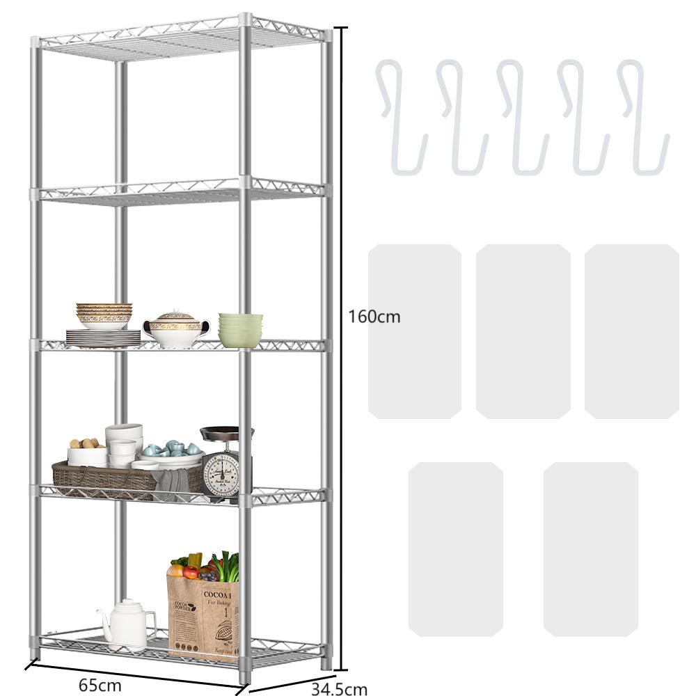 5-Tier Steel Shelving Kitchen Rack Organizer Metal Storage Rack Unit High Carbon Steel Mesh Layers Rack