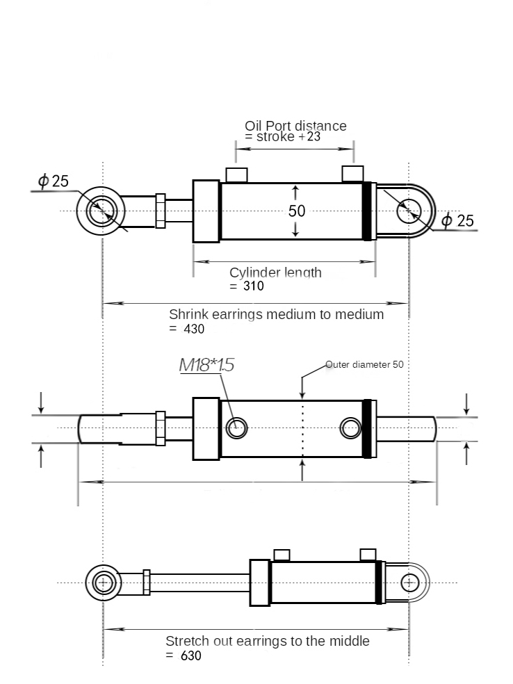 5 Tons Two-Way Hydraulic Cylinder 63 Cylinder Diameter Steering Cylinder Double-Acting Cylinder Hydr