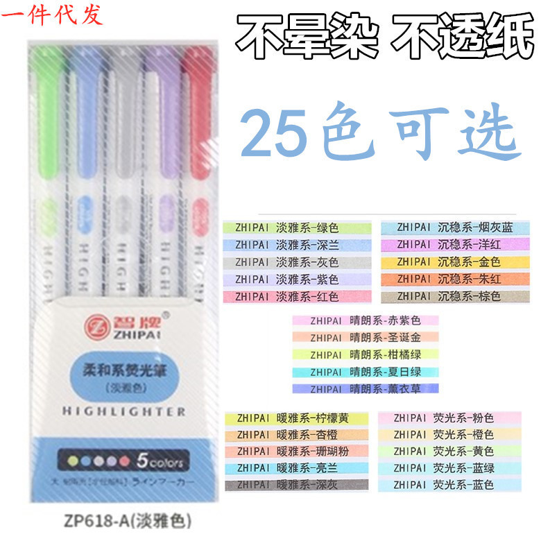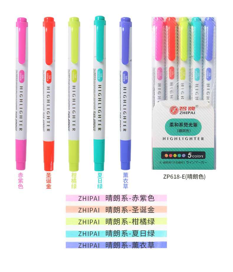 5 colors/set 25 colors Pastel color double-headed highlighter pen