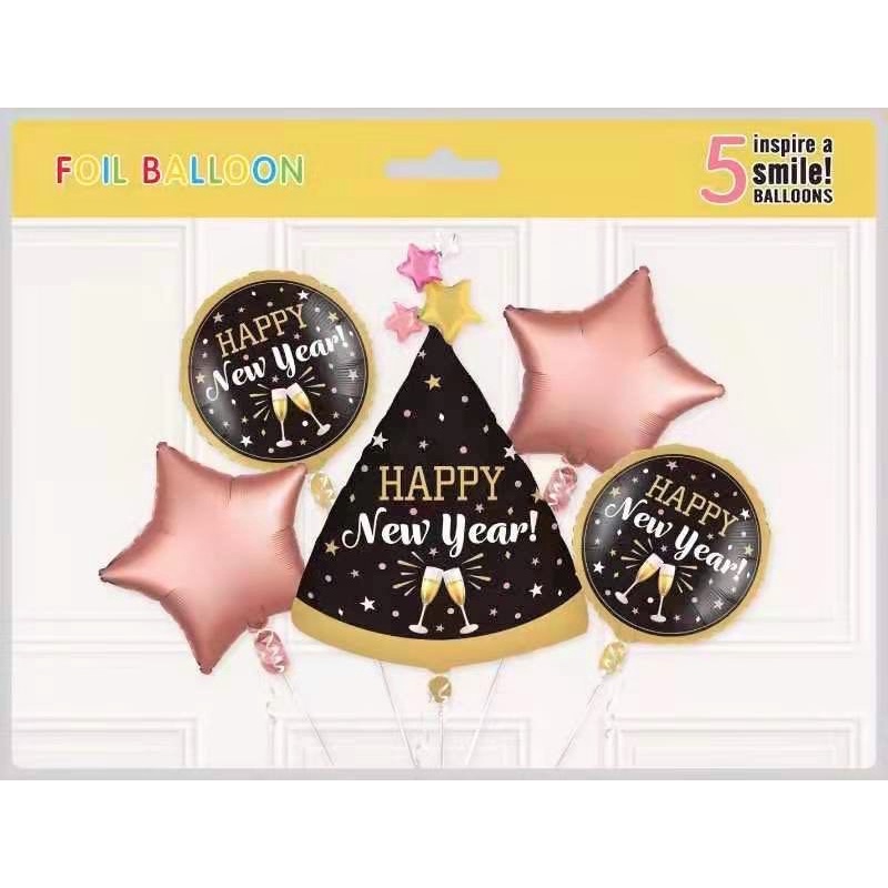 5 in 1 Happy New Year Foil Balloon Set Decoration Champagne