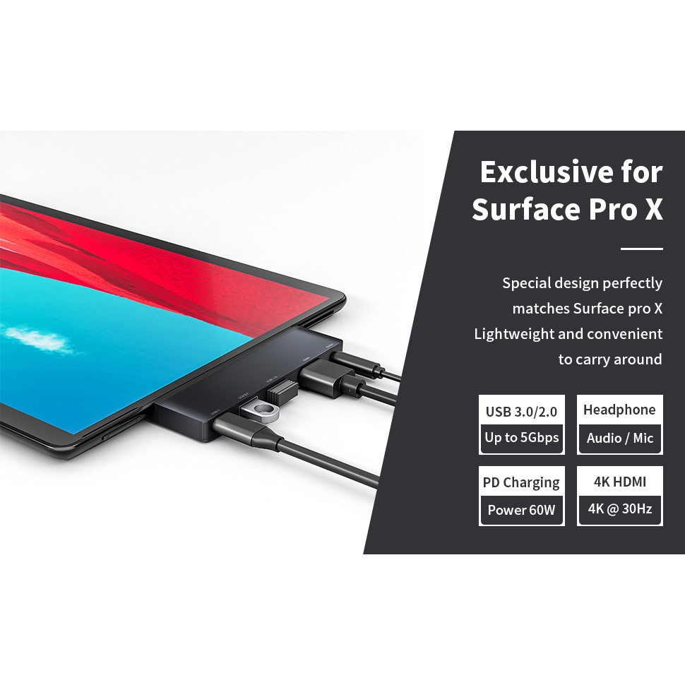 5 in 1 USB C Hub Docking Station for Microsoft Surface Pro X Dock with 4K HDMI Audio 2USB Ports 60W USB C PD Charging