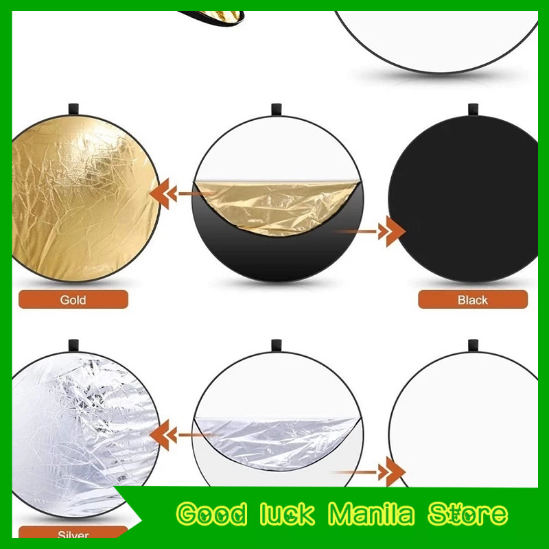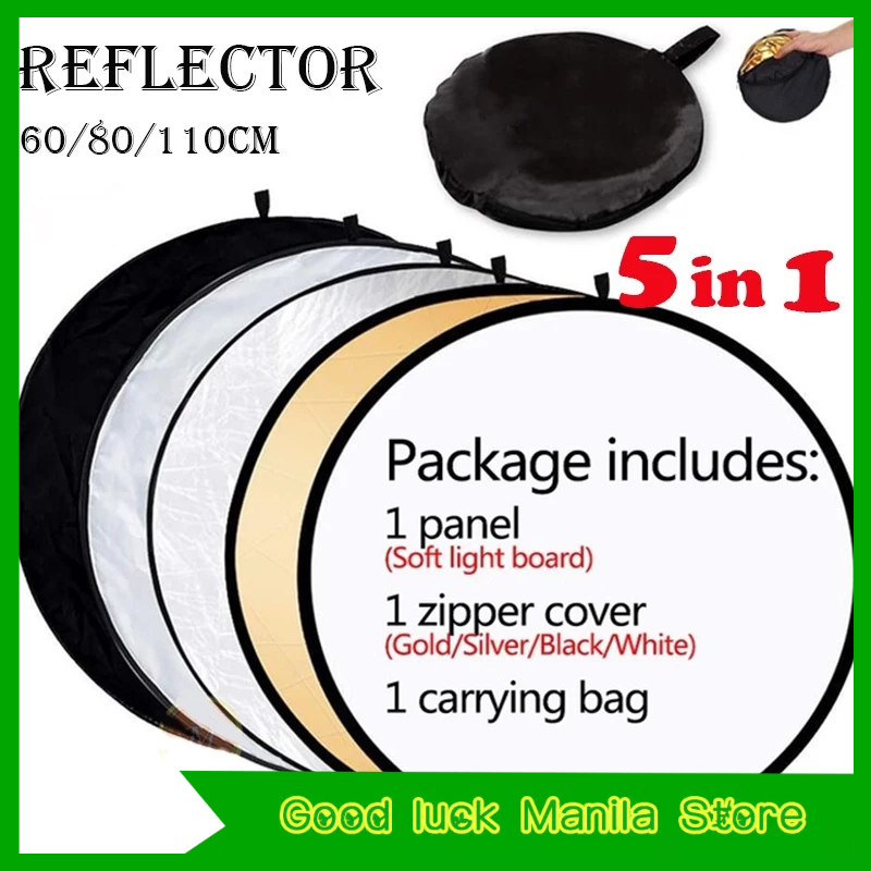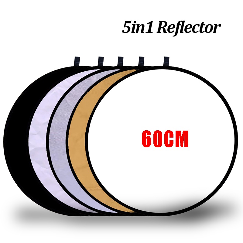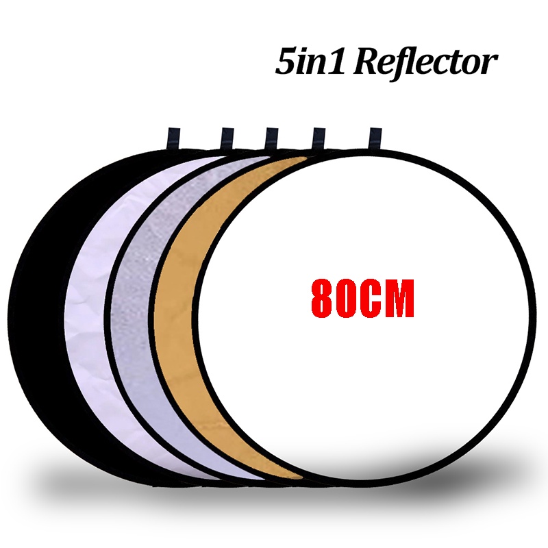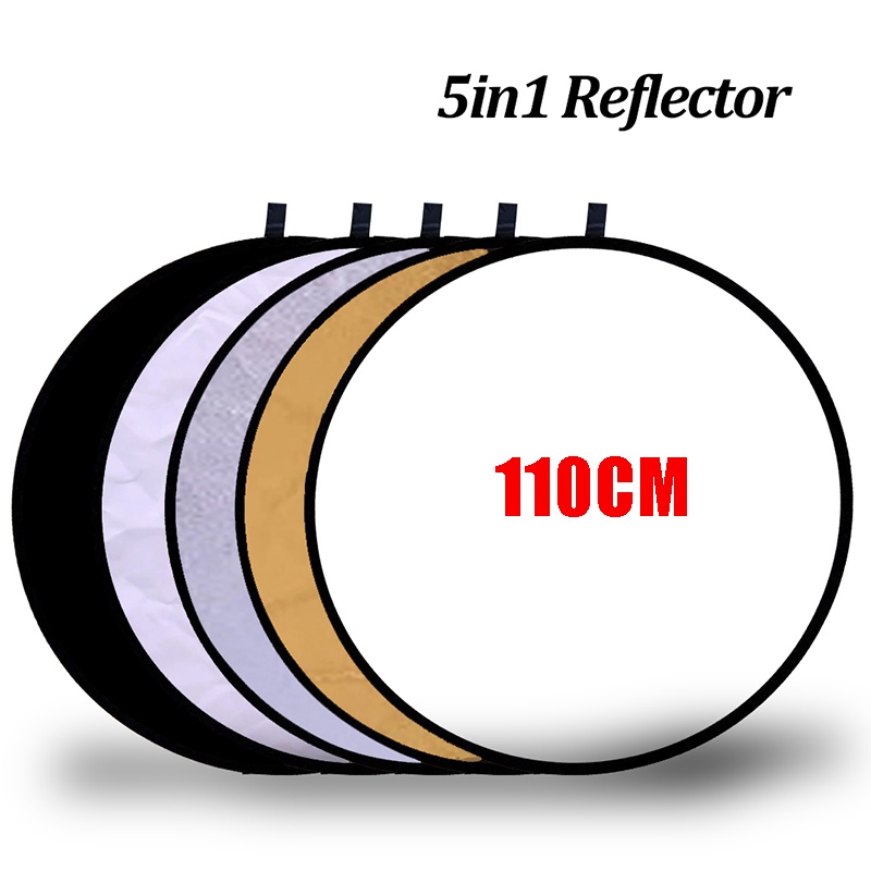 5 in1 60cm/80cm/110cm Reflector Collapsible Portable Light Round Photo Studio Diffuser DISC Silver