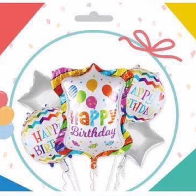 5 pcs square balloon & chevron design happy birthday foil balloon set