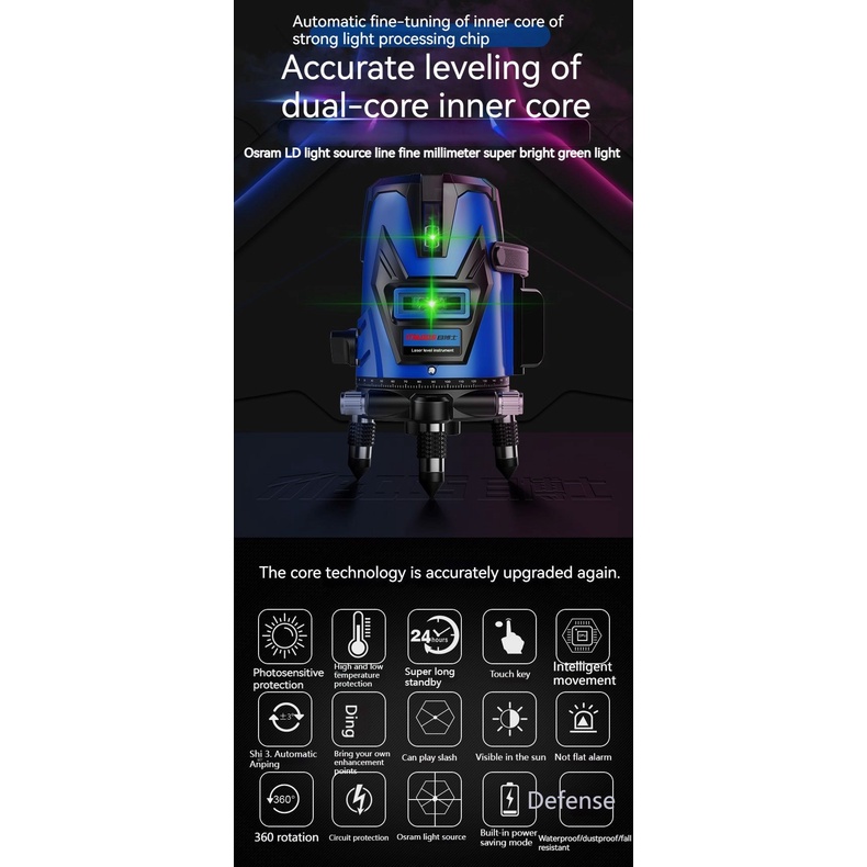 5-wire 12-wire Laser level rotatable Self-Leveling Slope Vertical Function 3D green light source