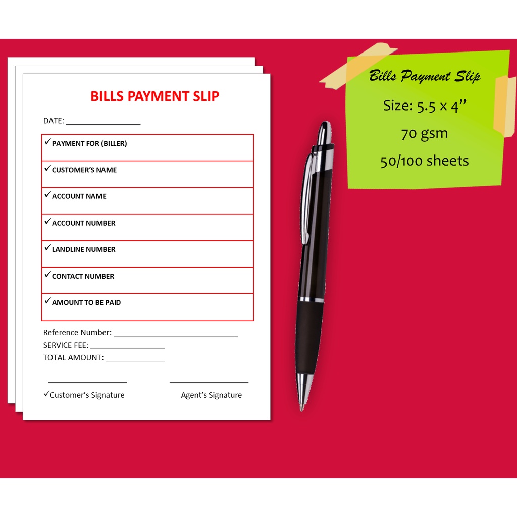 5.5x4" GCash Transaction Slips | Bills Payment | Transaction Slip 50/100 sheets (Can be Customized)