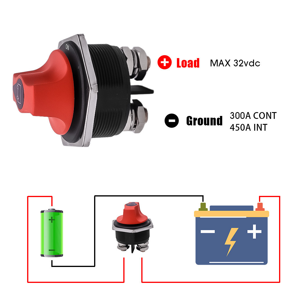 50/100/200/300A Car Battery Disconnect Switch - Battery Master Cut Shut Off Switch - DC Disconnect Power Isolator - INT ON-Off Power Battery Switches - For Vehicles, Truck, Boat