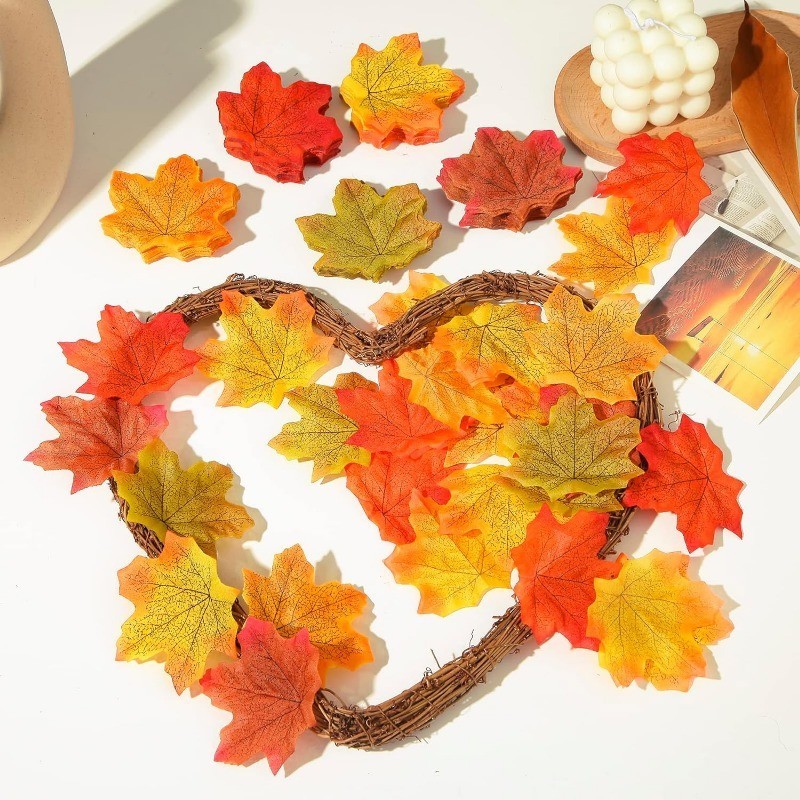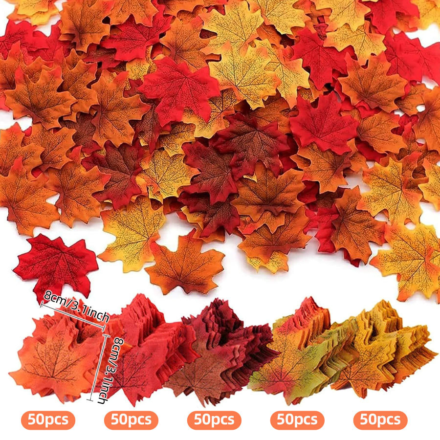 50/100/250Pcs Fall Leaves Fake Artificial Maple Leaves for Thanksgiving Decorations Autumn Silk Leaf for Fall Wedding Table Festival Party Home DIY Halloween Decor