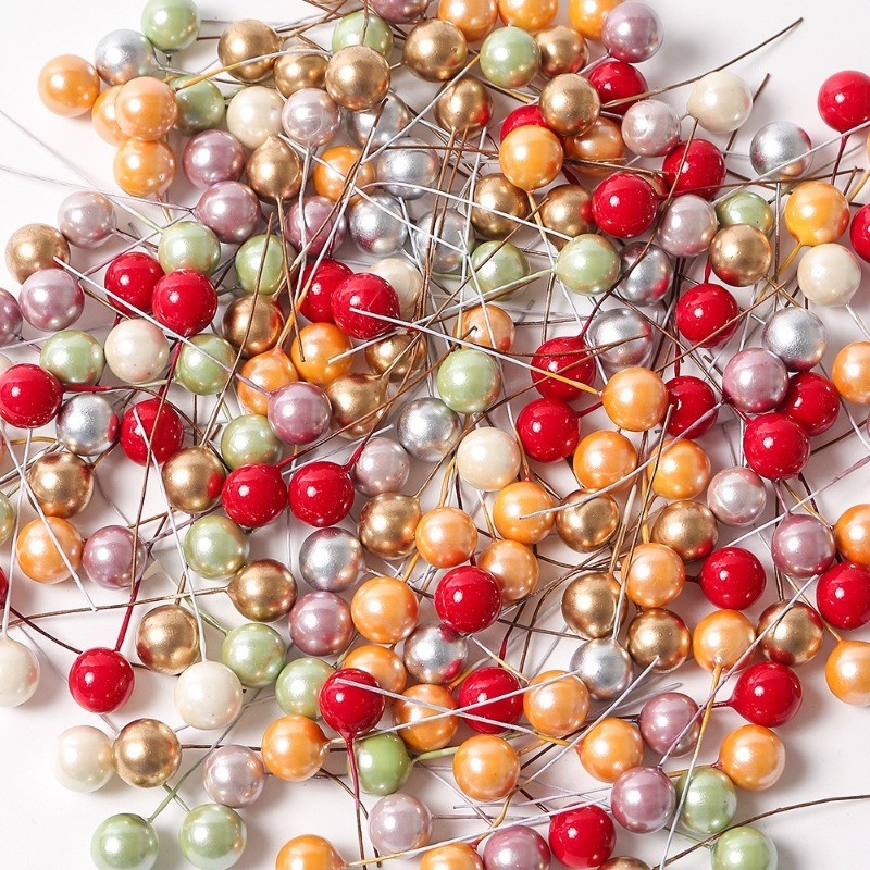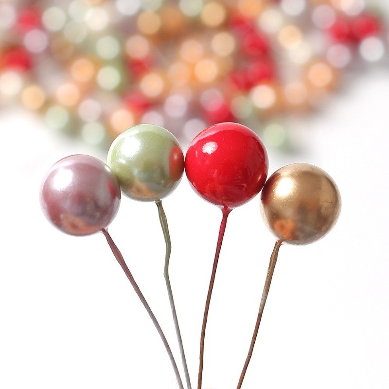 50/100Pcs Artificial Mini Berries Red Colorful Fake Berries Cherry Stamen Xmas Decortions Fake Holly Berry Flowers Pearl Beads DIY Christmas Wreath Xmas Gift Ornament