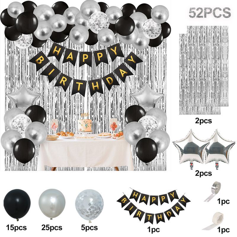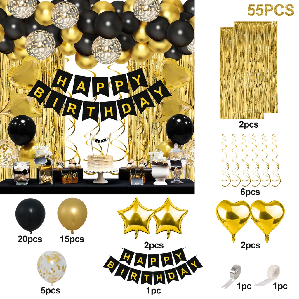 50/55pcs Happy Birthday Decorations Set Confetti Metallic Balloons Foil Curtain Happy Birthday Banner Birthday Party Needs Backdrop