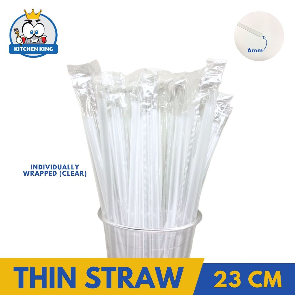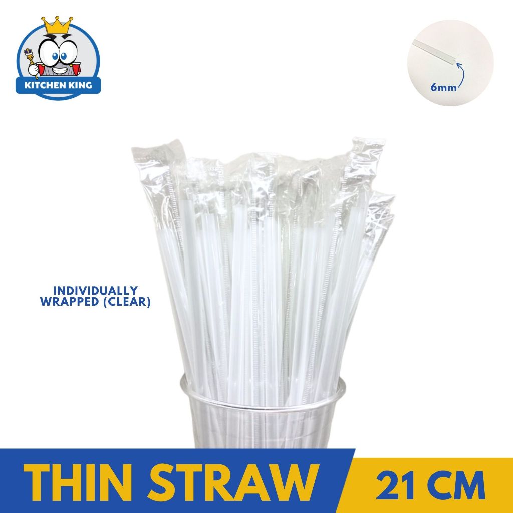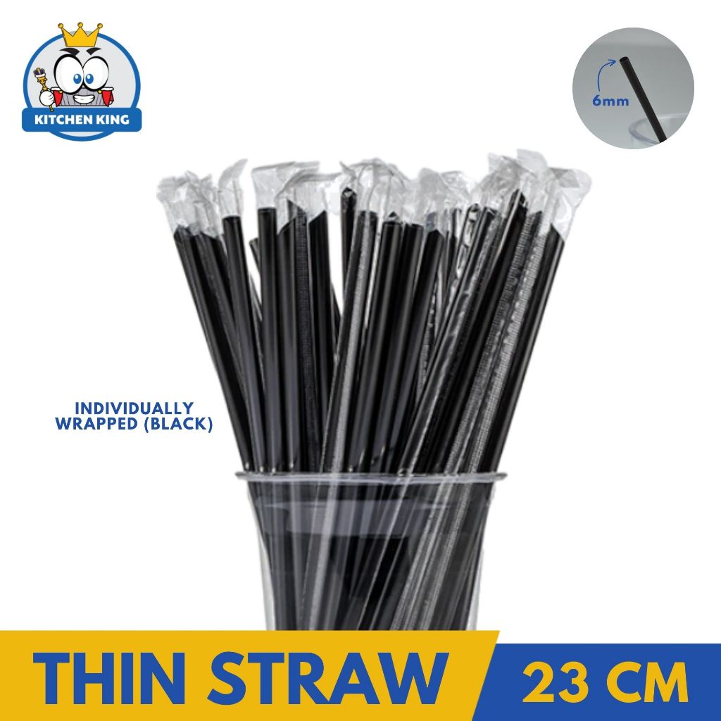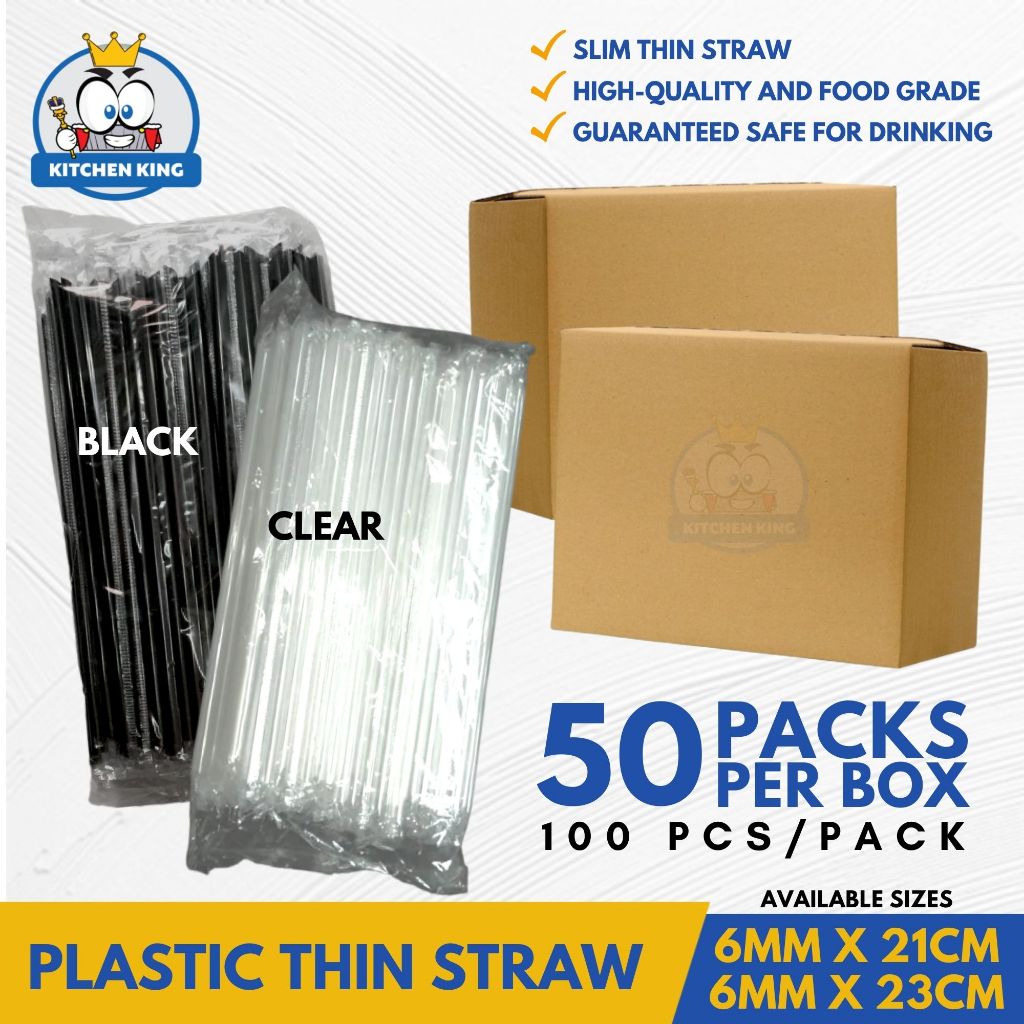 50 PACKS/BOX - Plastic Thin Straw 6MM X 21CM / 23CM - CLEAR / BLACK [Individually Packed By 100's]