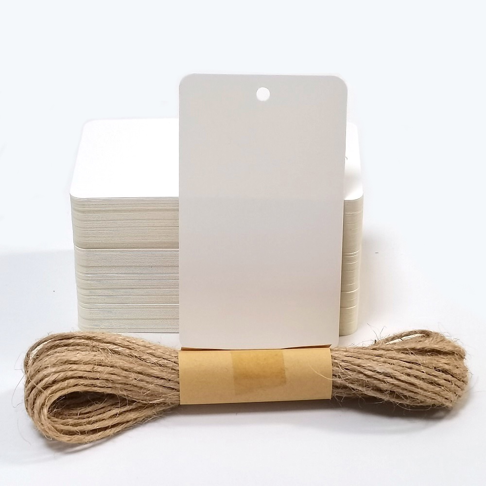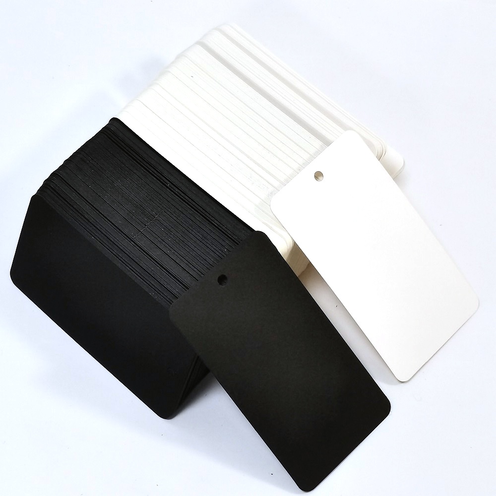 50 Pcs 9x5cm Blank Kraft Paper Hang Tags Black White Cards With Hole Diy Clothing Tags Writable Baking Gift Message Card With Rope