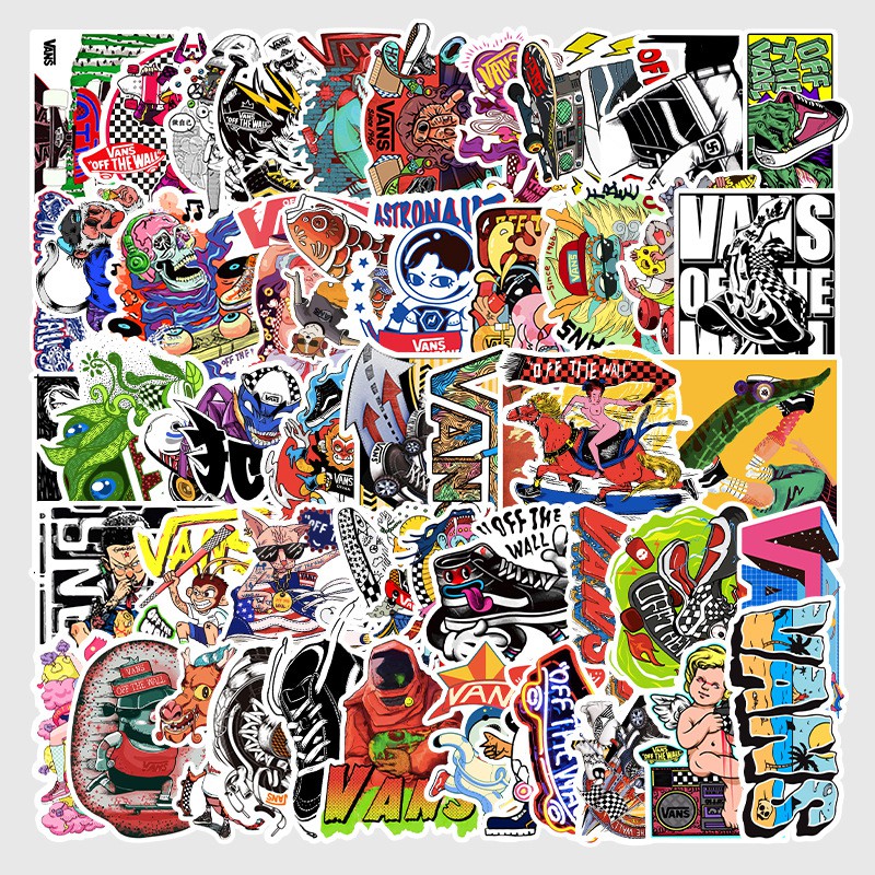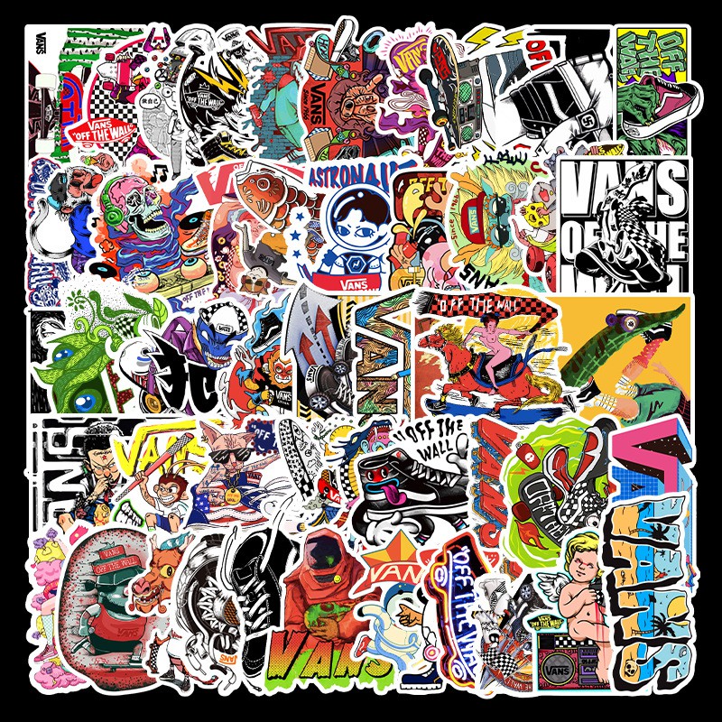 50 Pcs Cartoon Vans Waterproof Sticker Skateboarding Snowboard Retro Vinyl Sticker Graffiti Notebook Sticker