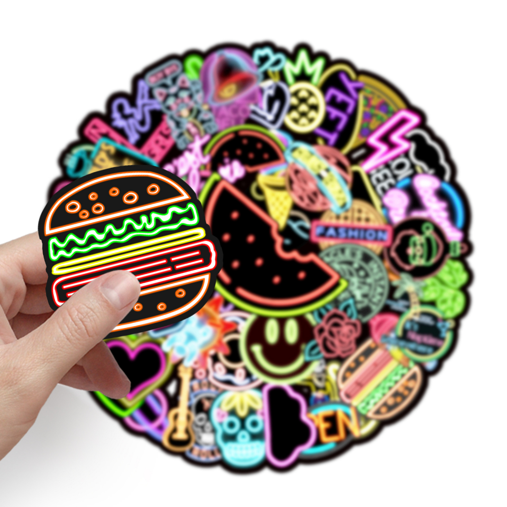50 Piece Funny Neon Light Stickers Waterproof DIY For Phones Laptop Car Sticker Creative Home Decal