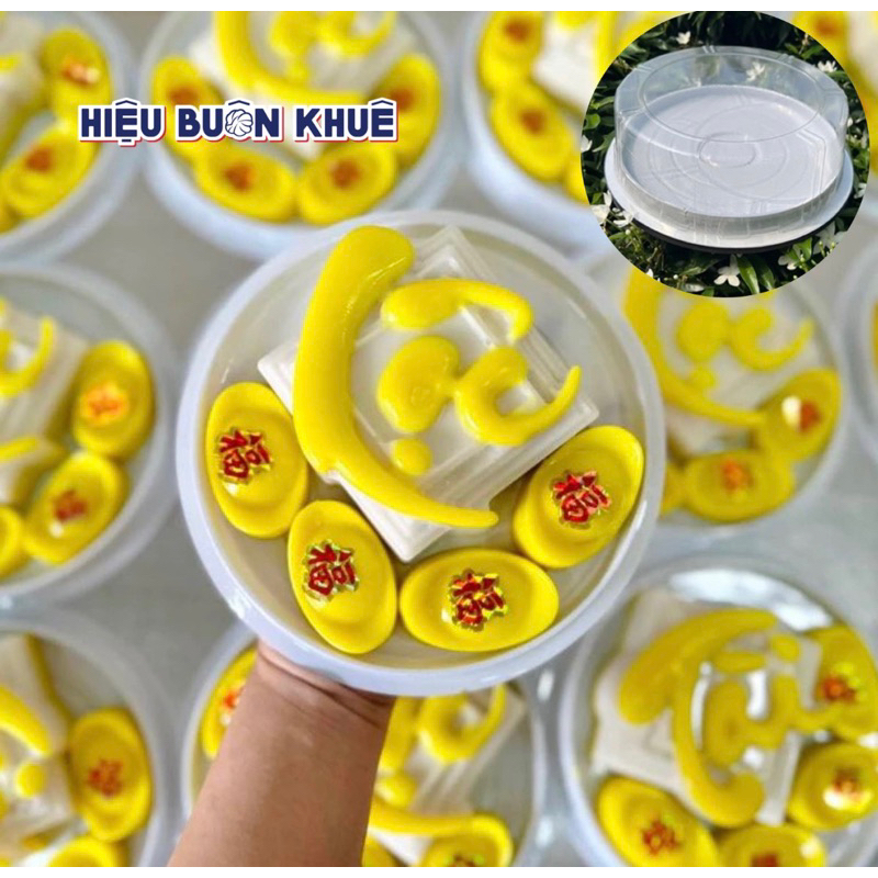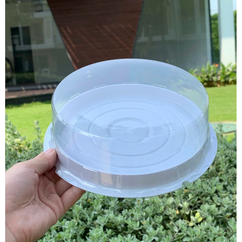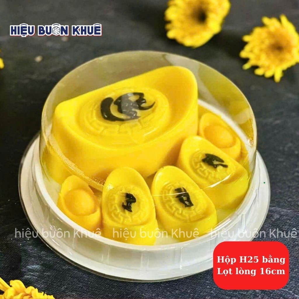 50 Round Plastic Boxes for Durian Crepe, Jelly, Salted Egg Sponge, Gold Bar Cake [H25 with flat lid - 16cm inside]