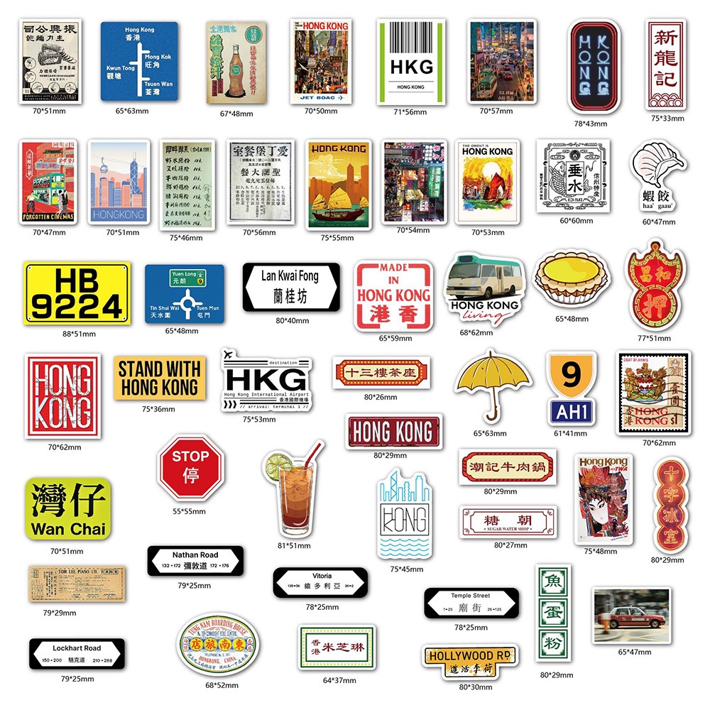 50 Sheets Hong Kong Style Stickers Snowboard Laptop Luggage Cartoon Graffiti Decals Cool Sticker