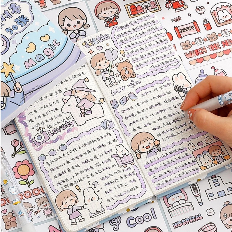 50 Sheets Sticker Cute Handbook Stickers For Notebook Set Combination Cartoon DIY Net Red Ins Style Girls
