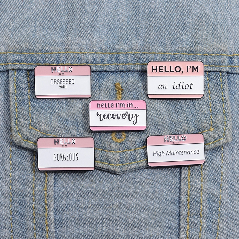 50 Styles Creative English Text Dialog Box Enamel Brooch Rainbow Dialog Box Lapel Pin Souvenirs Backpack Badges for Friends