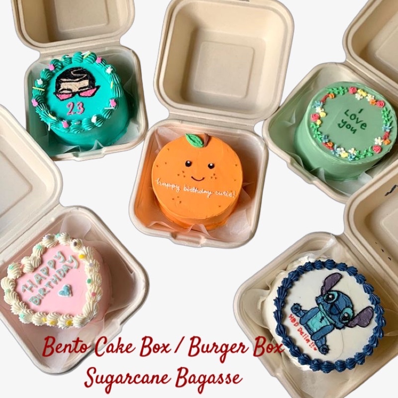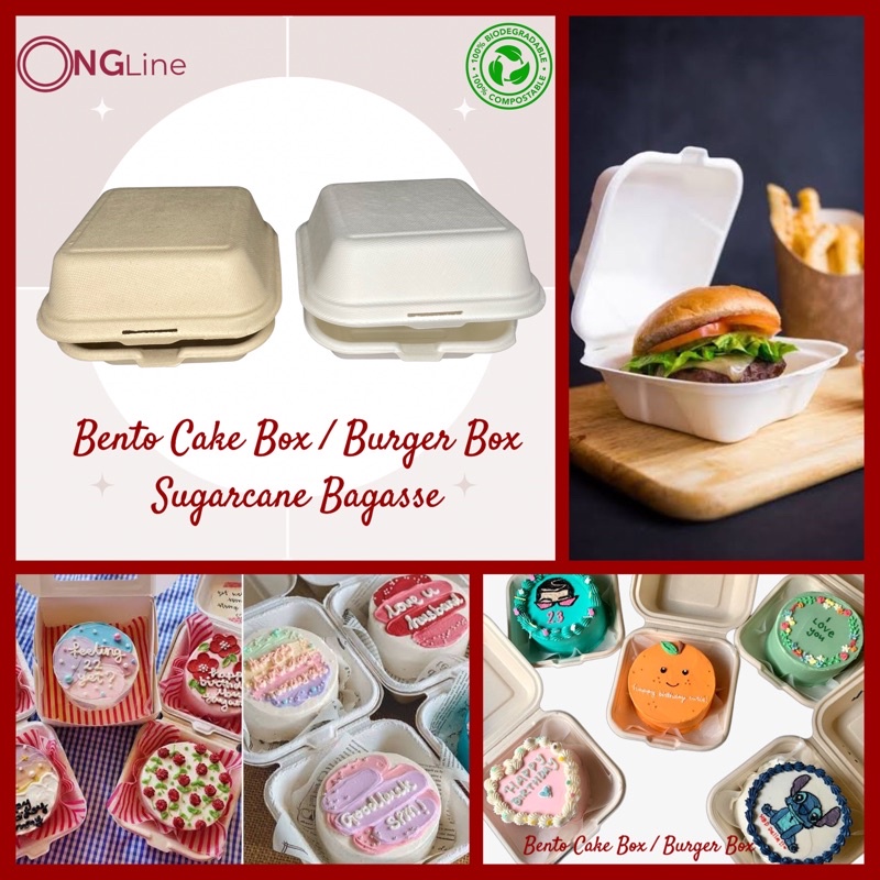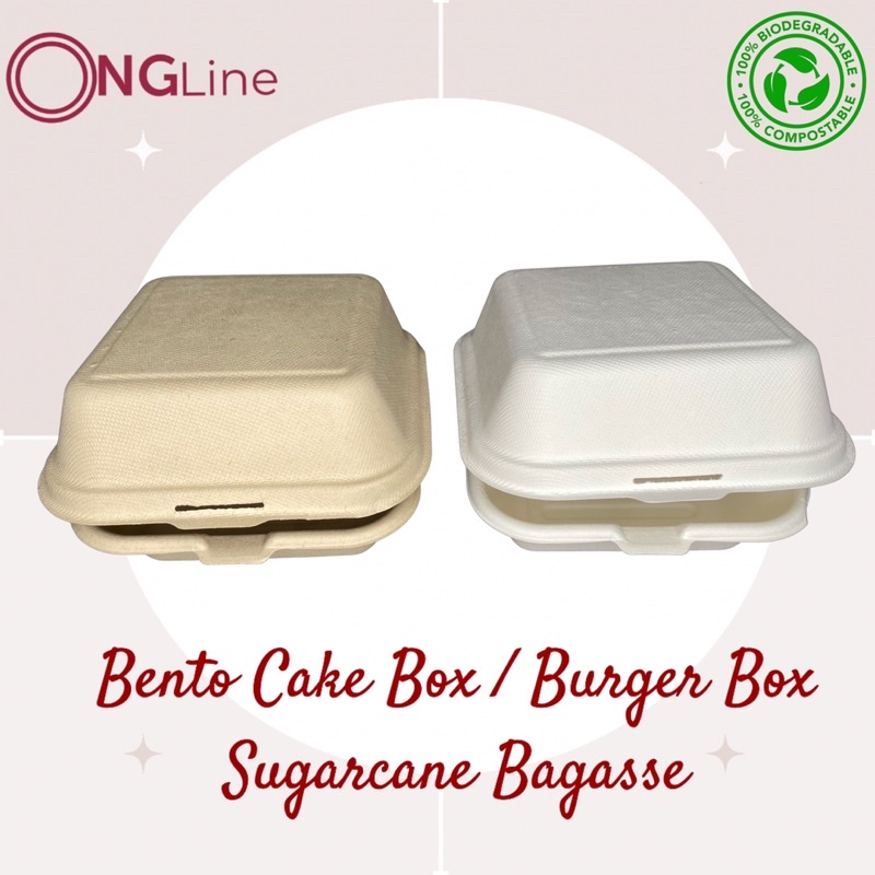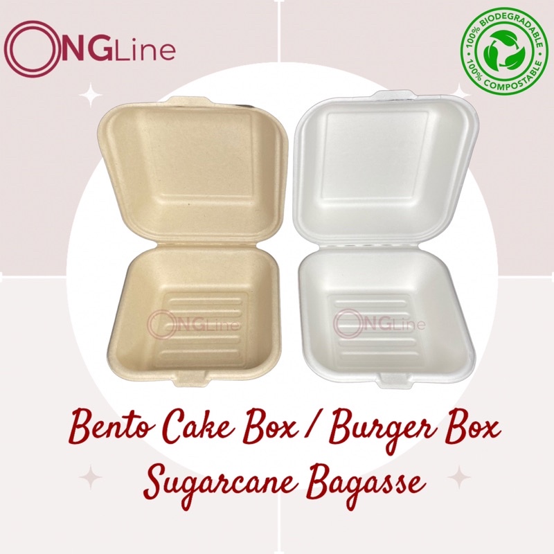 50 pcs. | Bento Cake Box | Burger Box | Clamshell | Sugarcane Bagasse