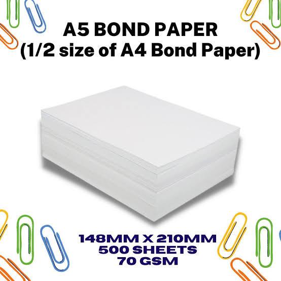 500 PCS Bond Paper Cut Size A5 (70gsm) for notebooks, journals 500sheets