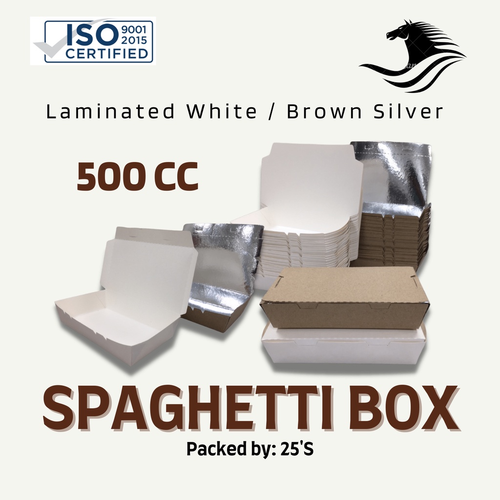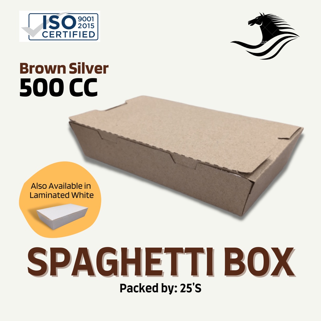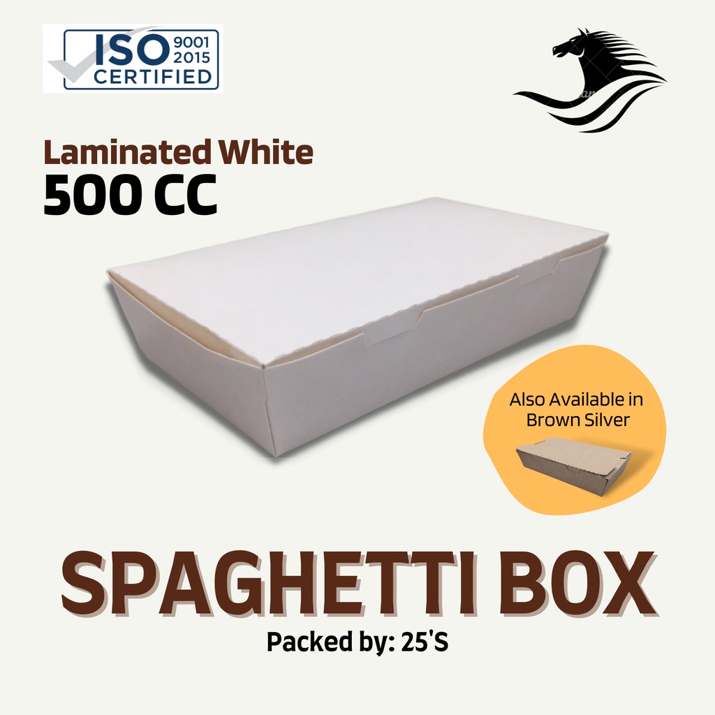 500CC Spaghetti Meal box / Lunch Box White or Brown Silver ( Sold By 25's )