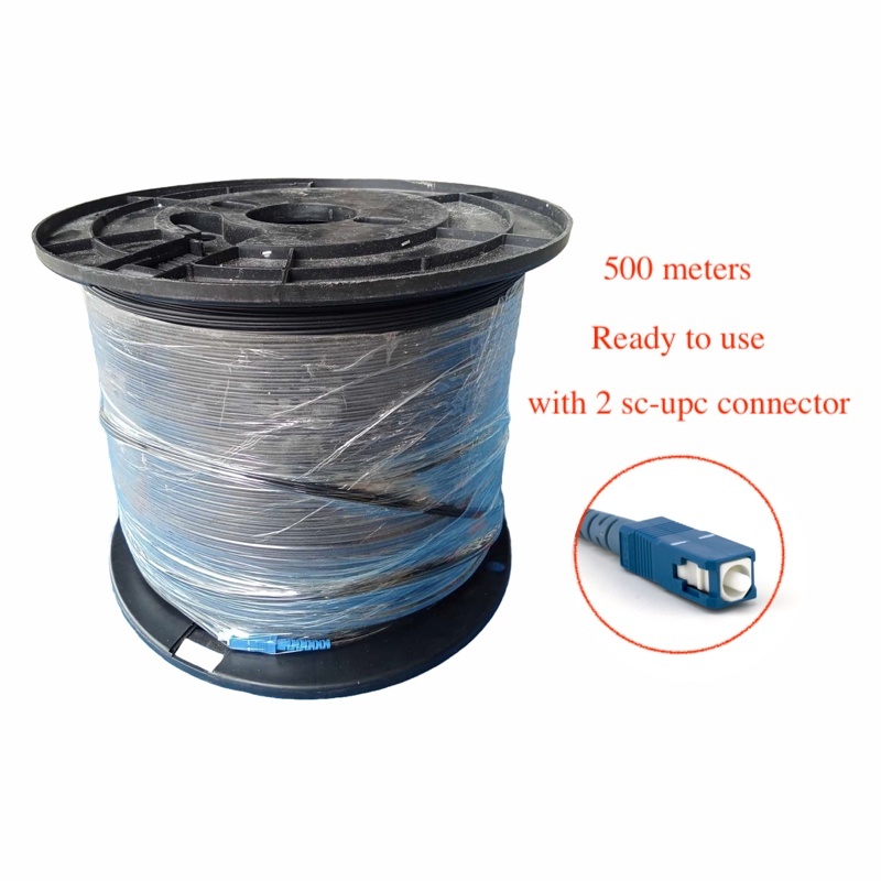 500M Fiber Optic Cable With SC Connector 500 meters FOC Pure Black Single Core Fiber Cable