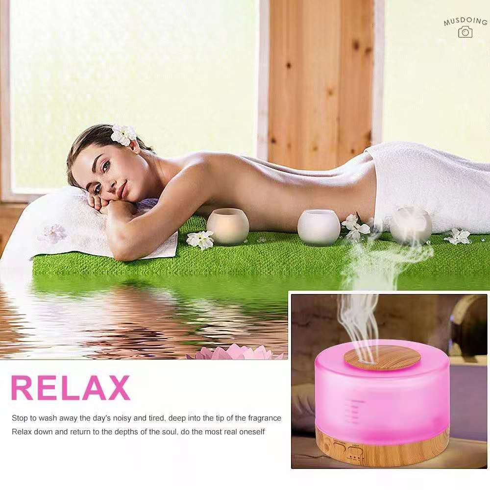 500ML 7LED Wooden Air Humidifier Essential Oil Diffuser With Remote Control (free oil)