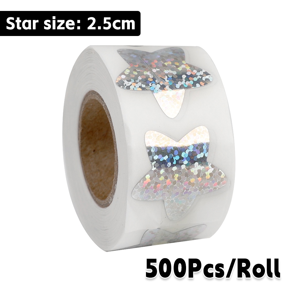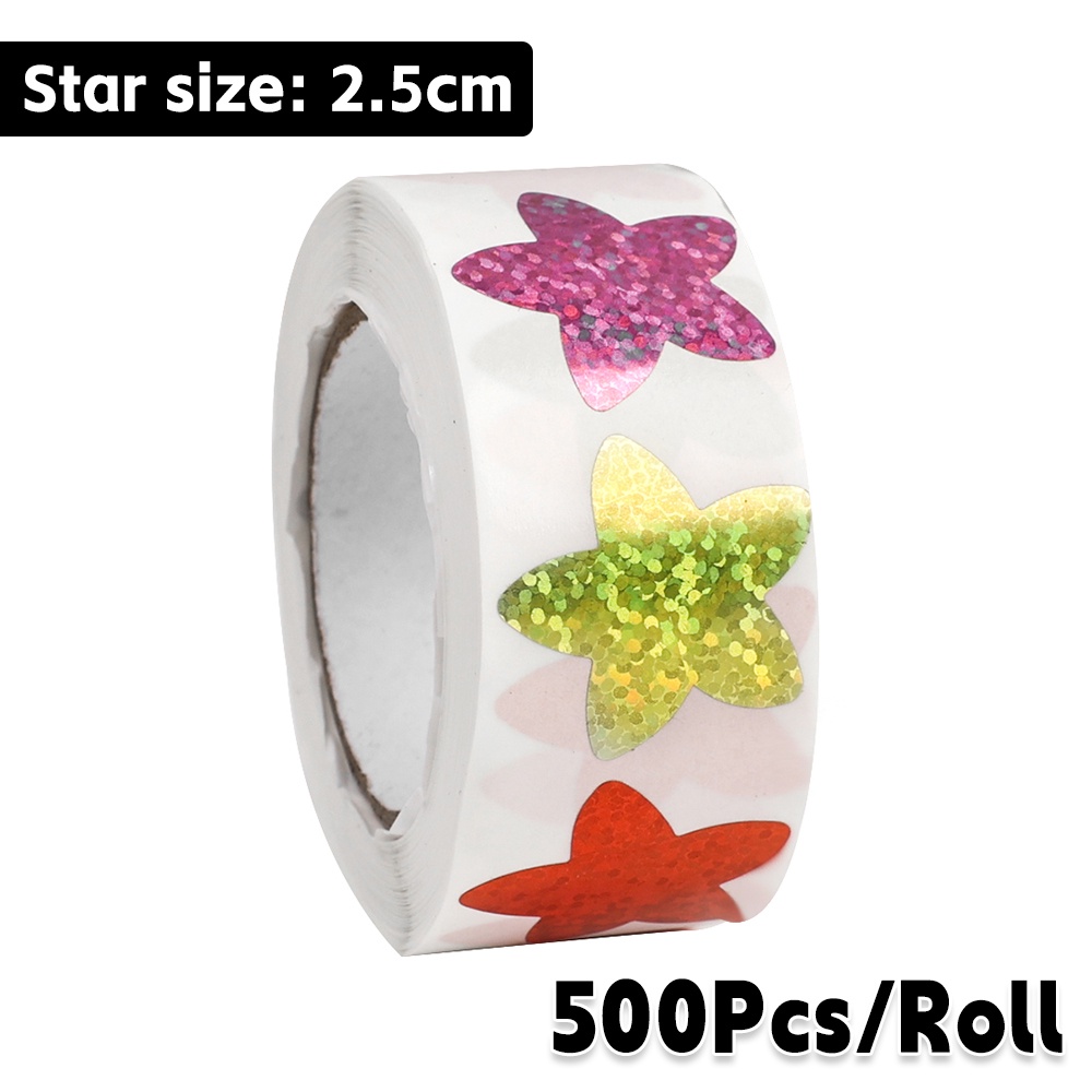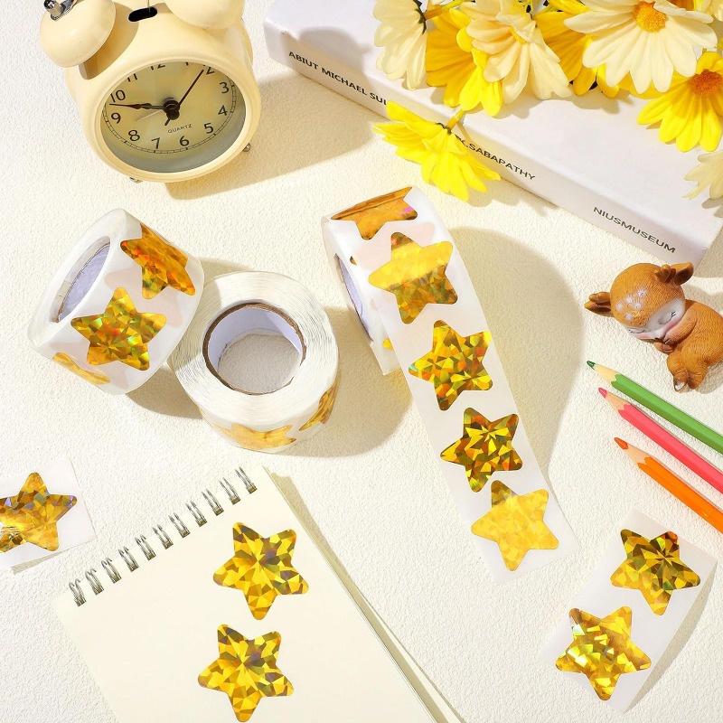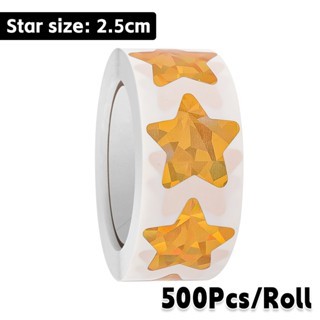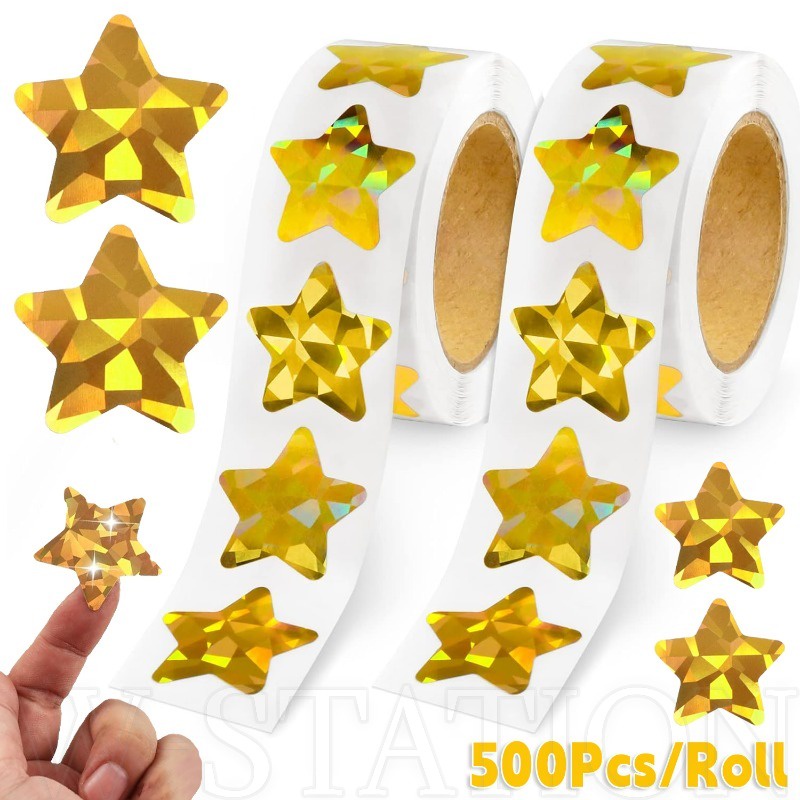 500Pcs/Roll Holographic Gold Star Stickers / Glitter Pentagram Self Adhesive Label Stickers / Kids School Teacher Reward Sticker / DIY Scrapbooking Note Present Decal