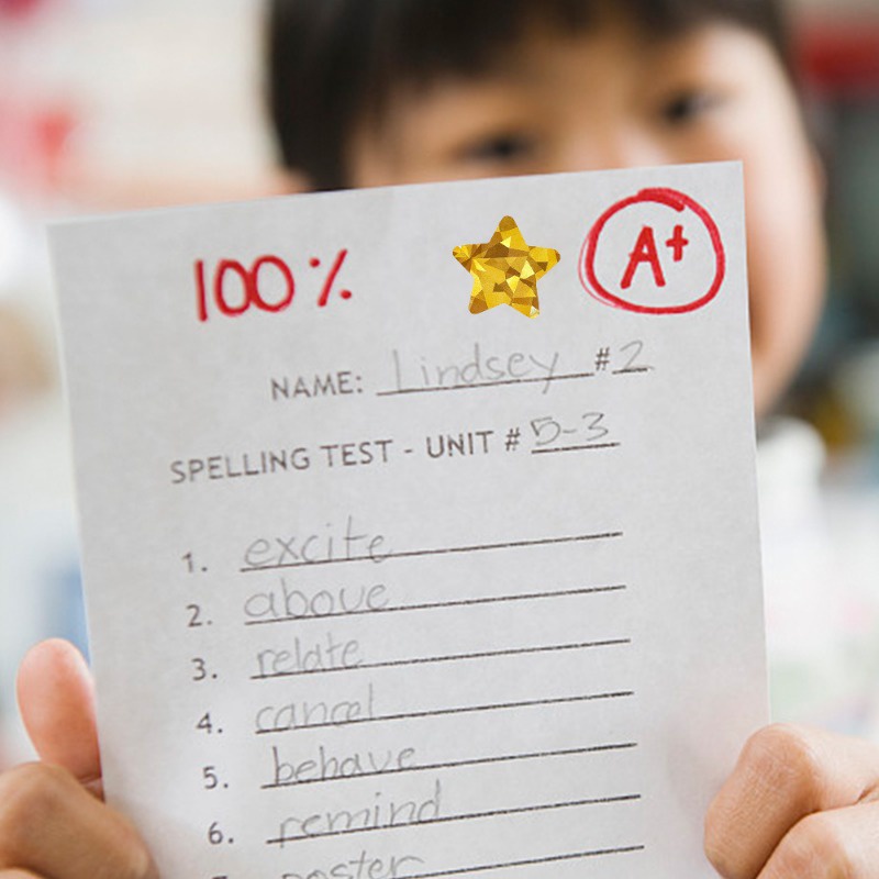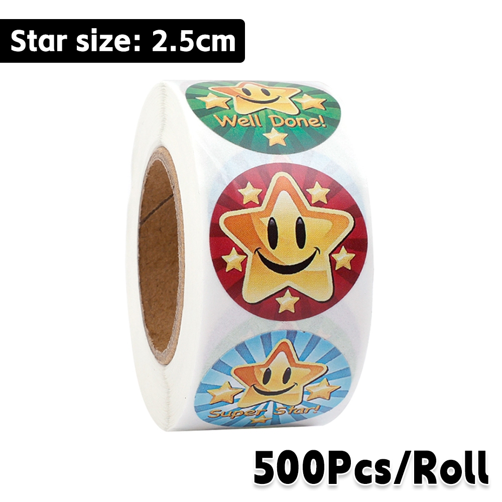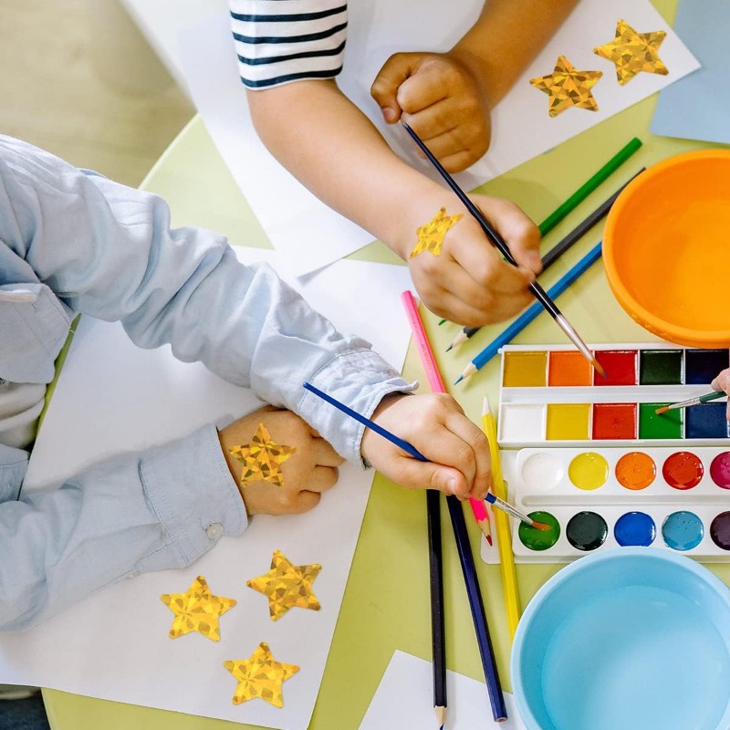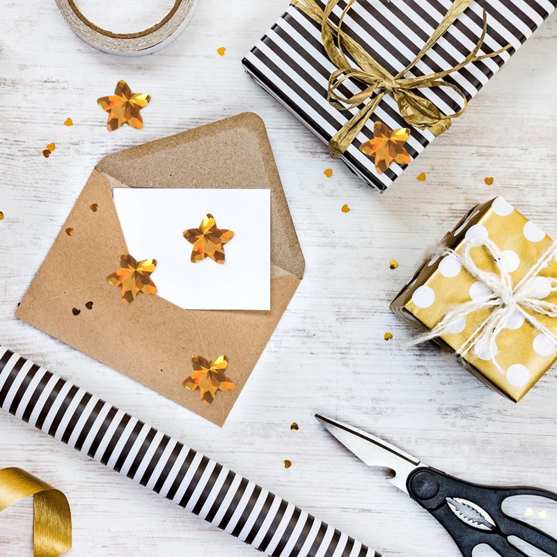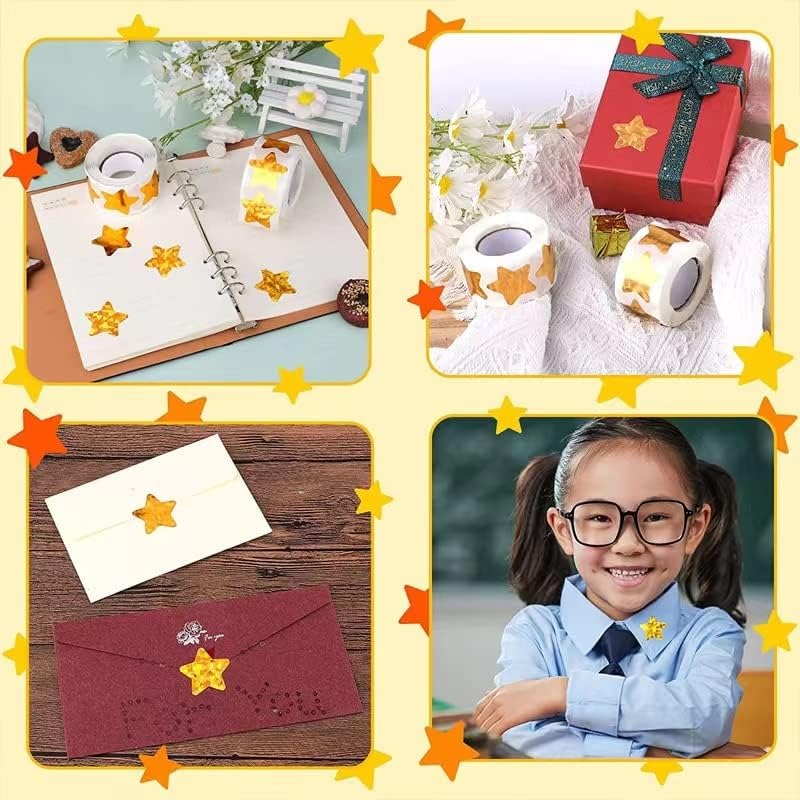500Pcs/Roll Holographic Gold Star Stickers / Glitter Pentagram Self Adhesive Label Stickers / Kids School Teacher Reward Sticker / DIY Scrapbooking Note Present Decal
